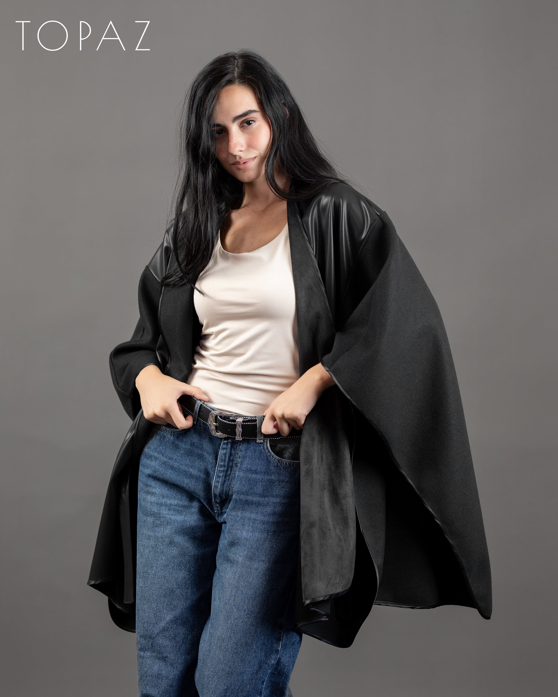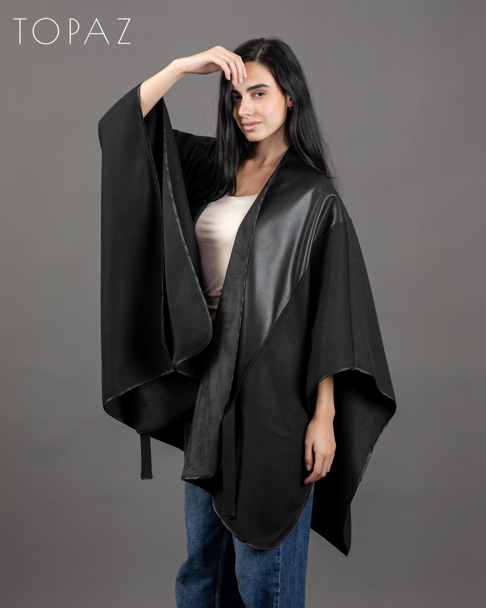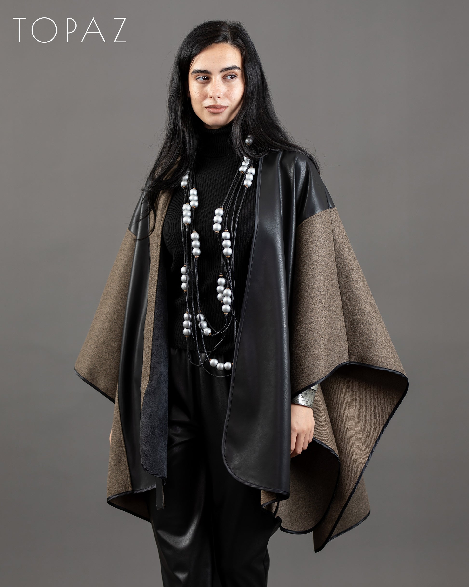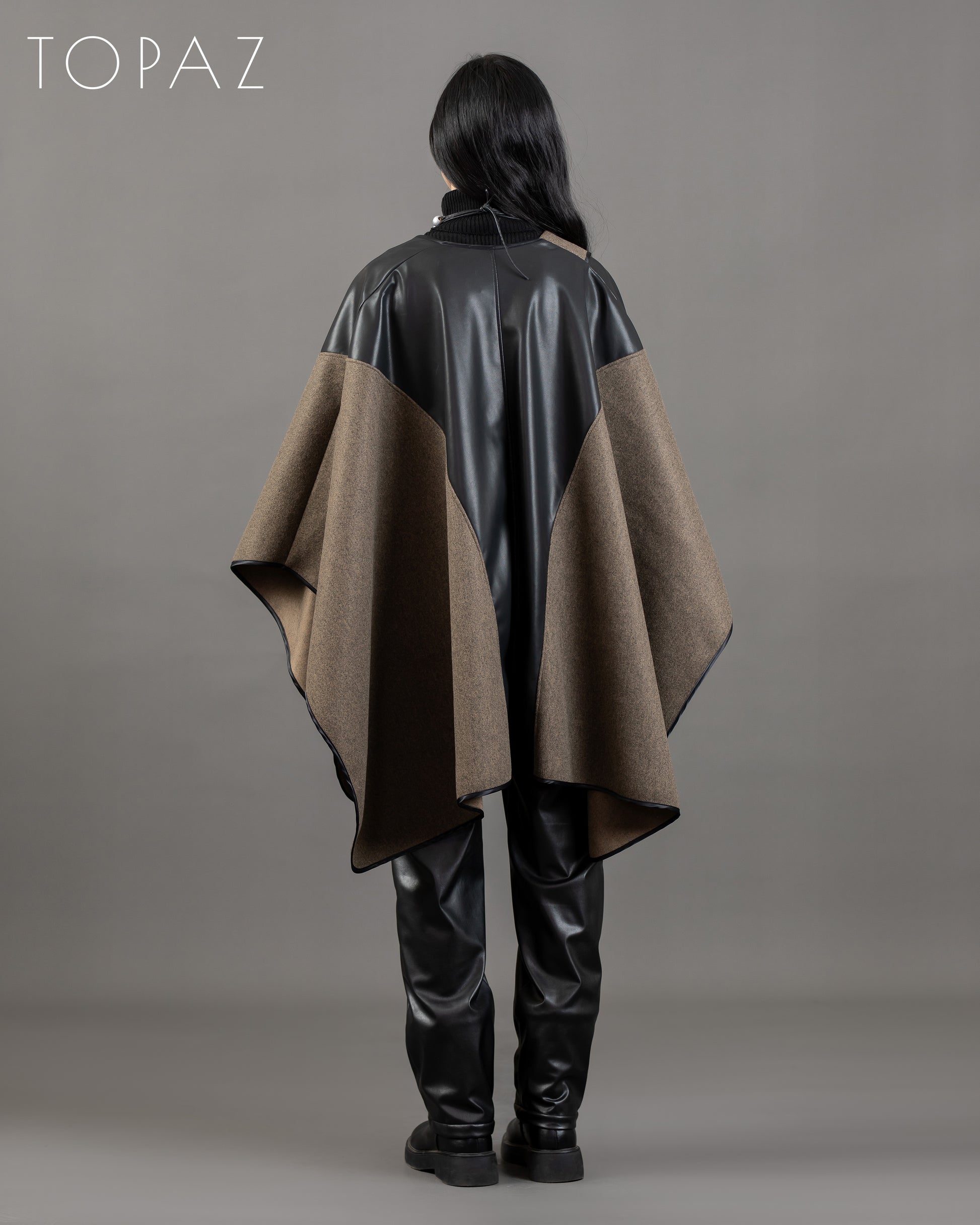 Poncho With Leather Panels