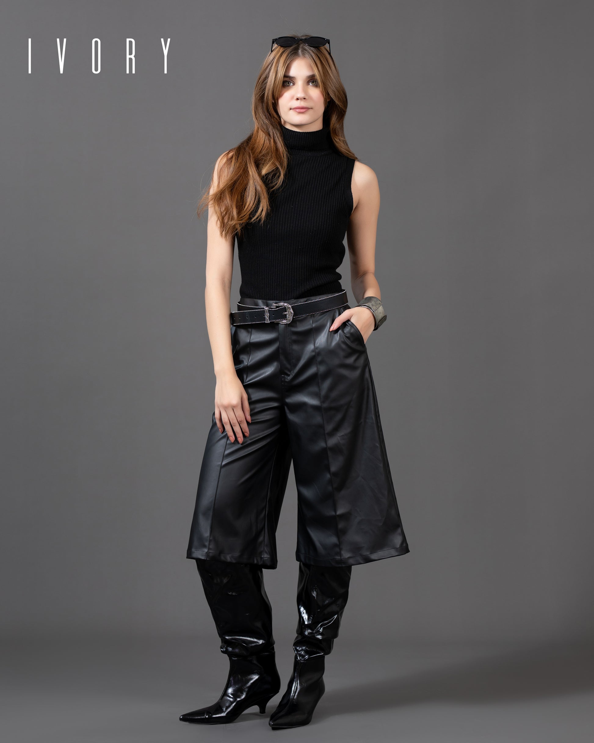 Shorts featuring an imported faux-leather fabric.