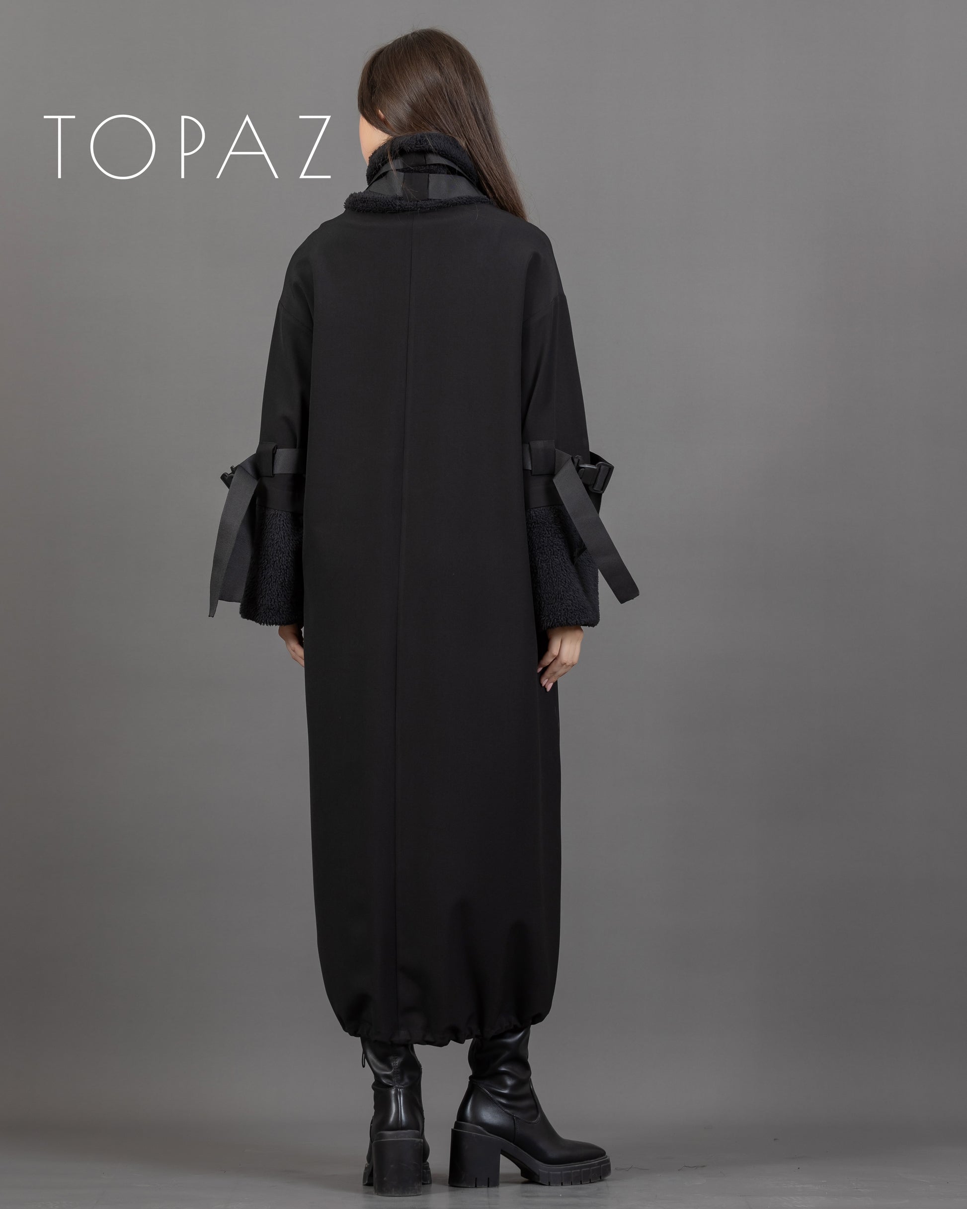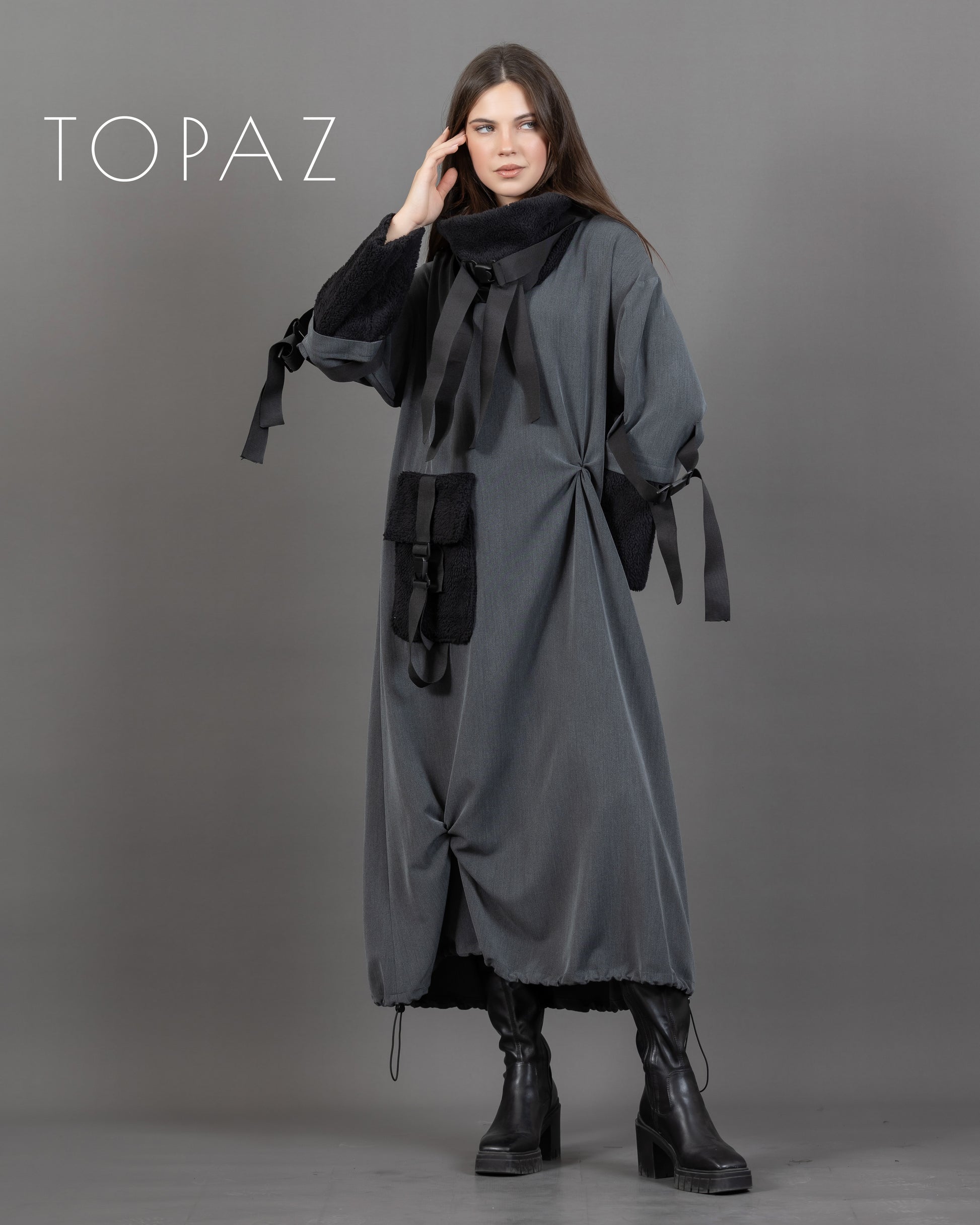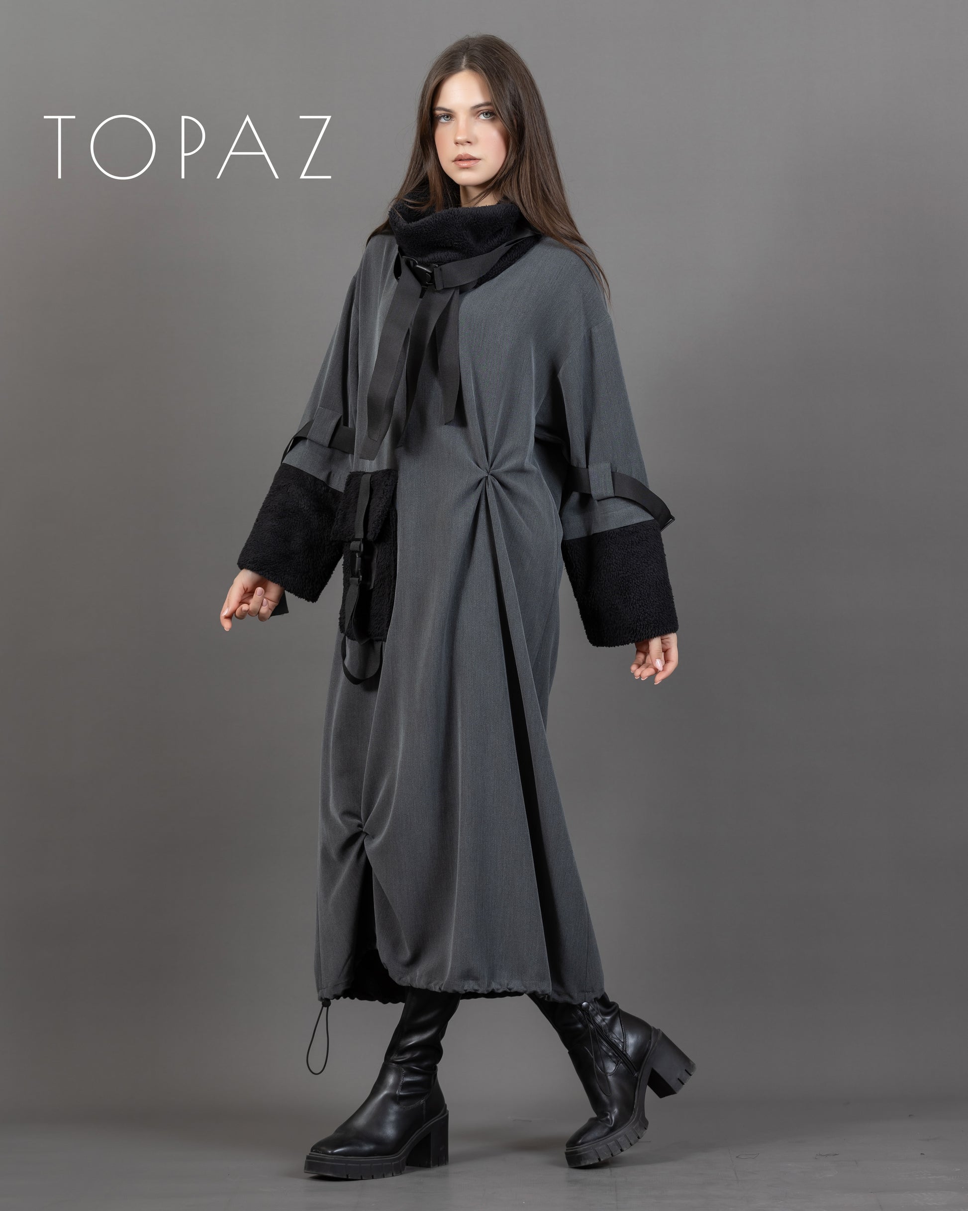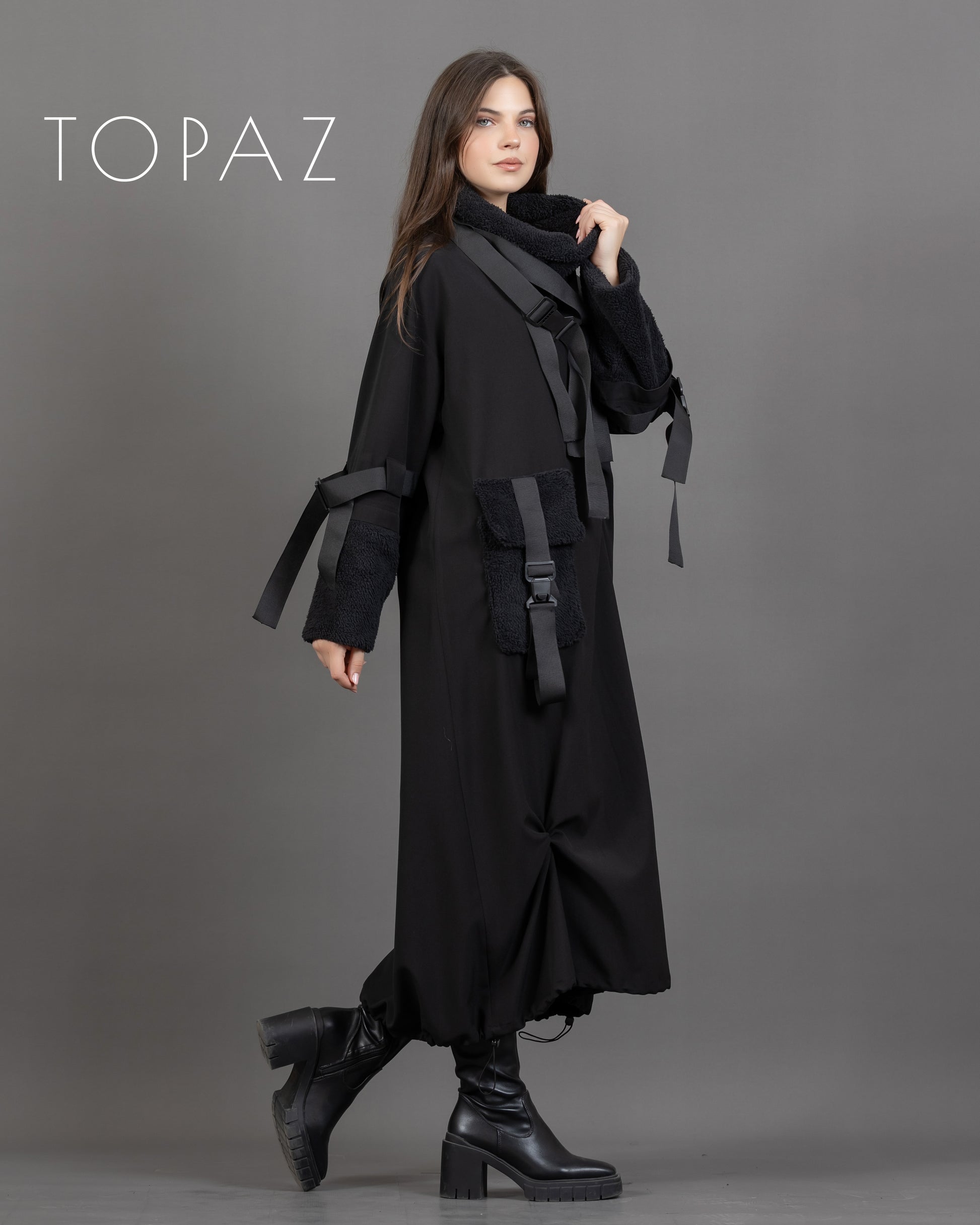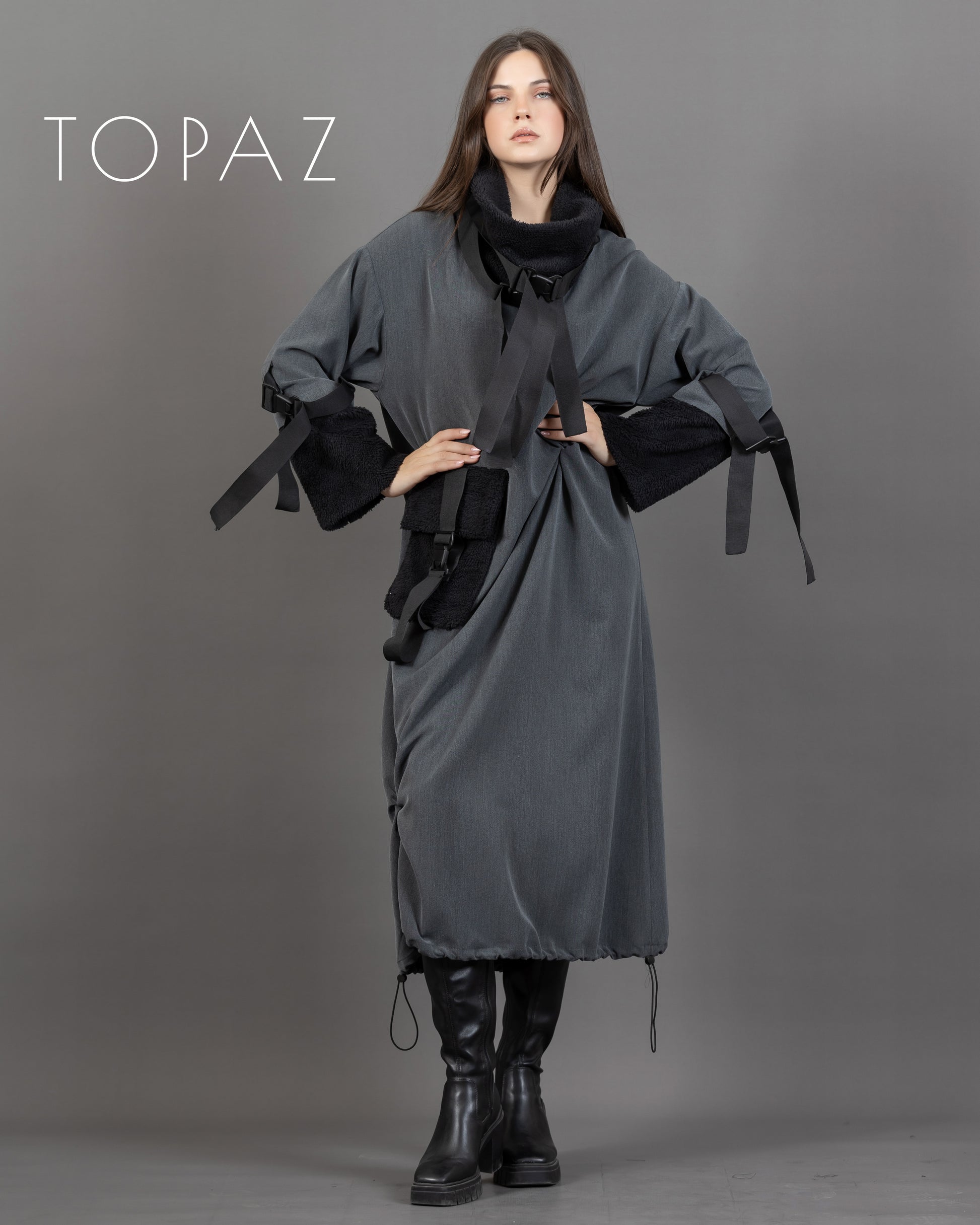 Dress featuring an imported Lycra winter fabric and buckle detailing.