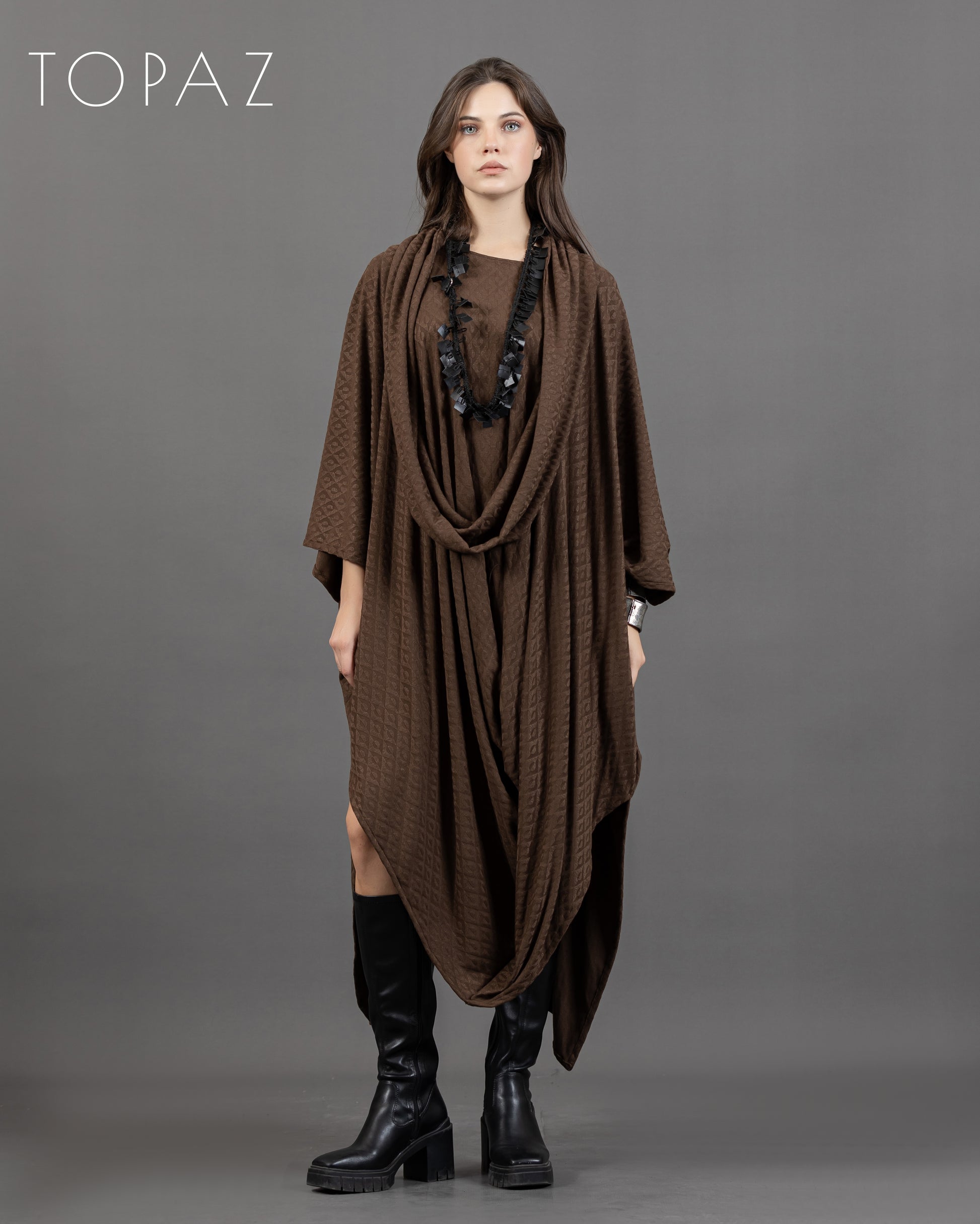Turtle-Neck Dress featuring an imported soft knit fabric and attacheable scarf.