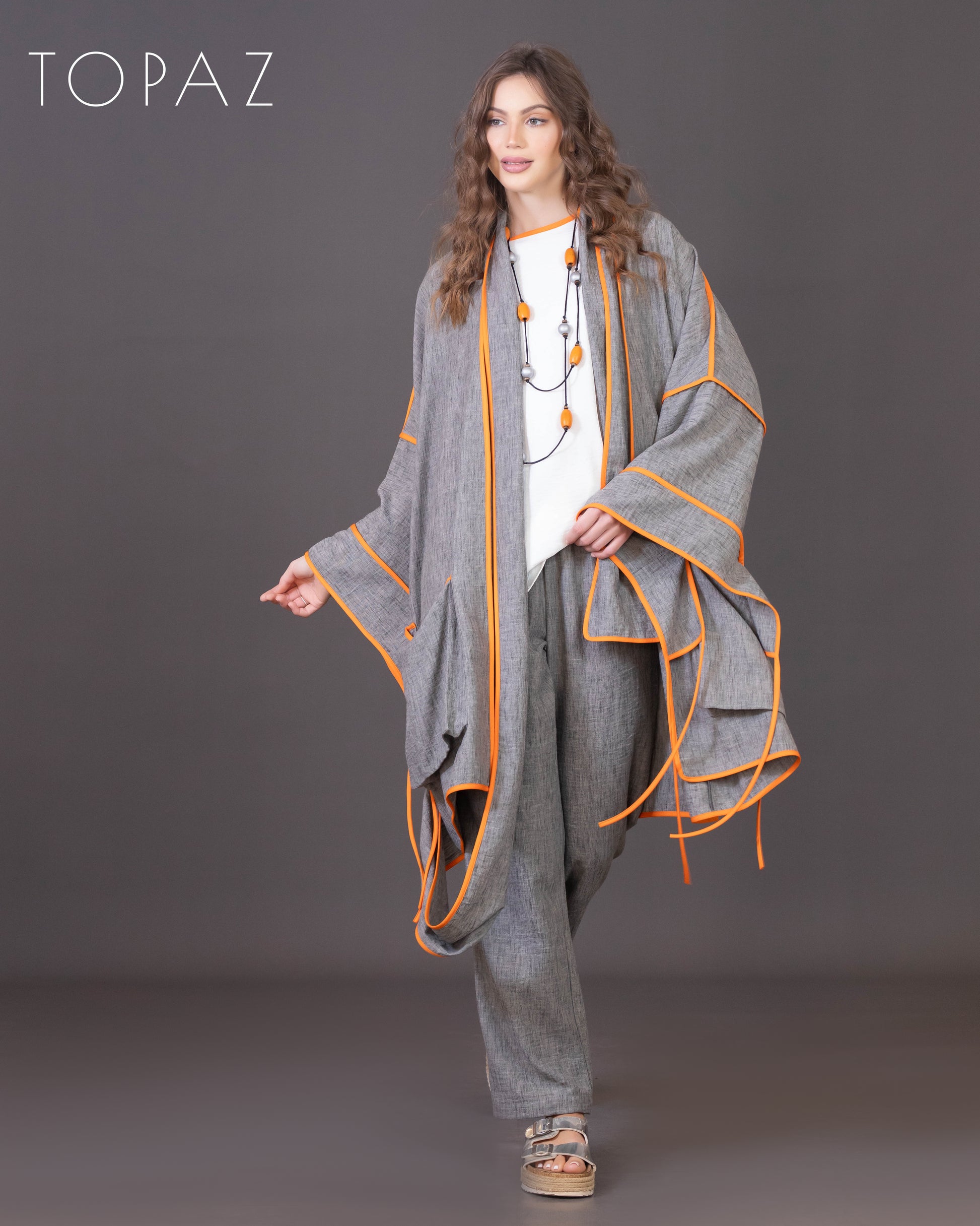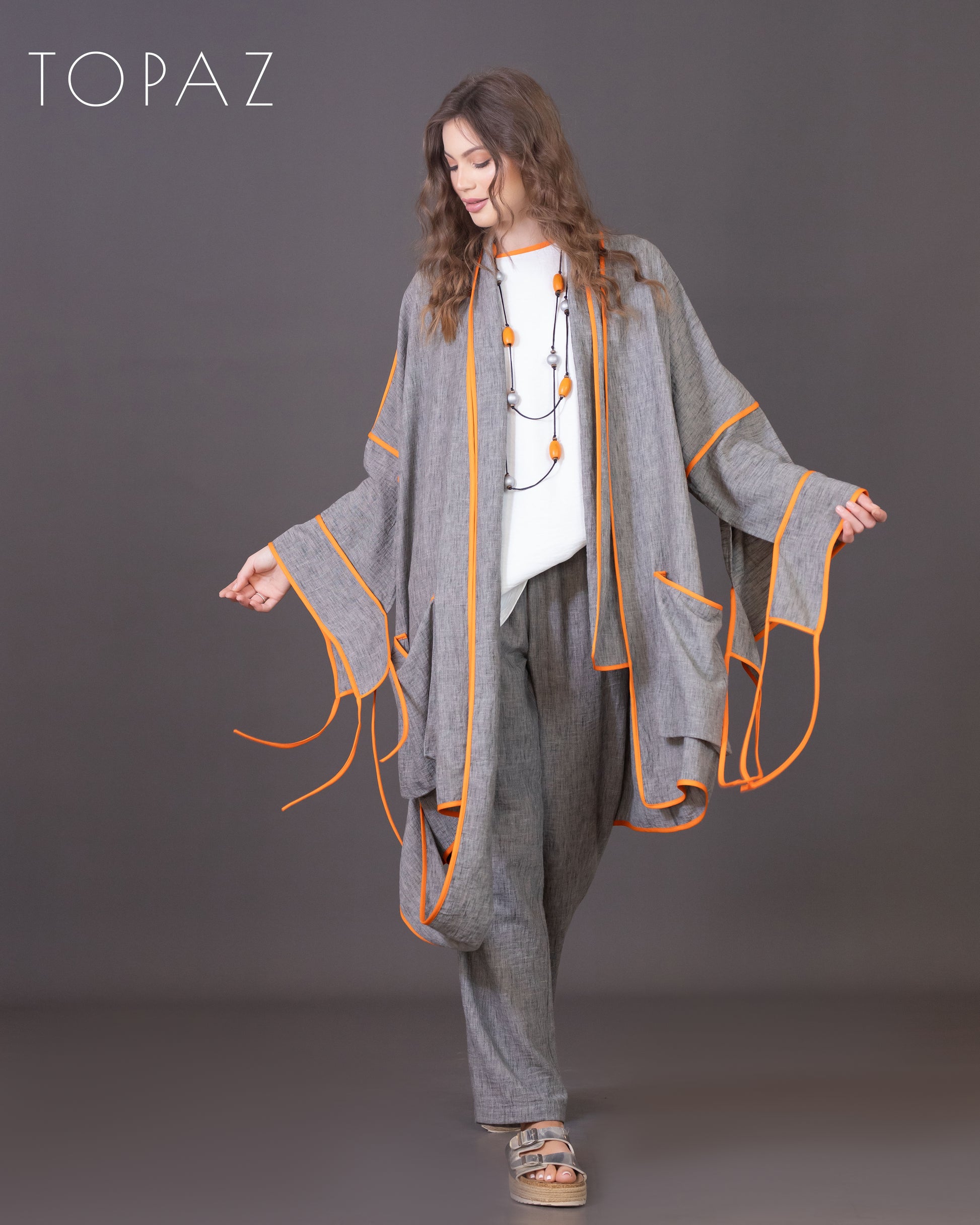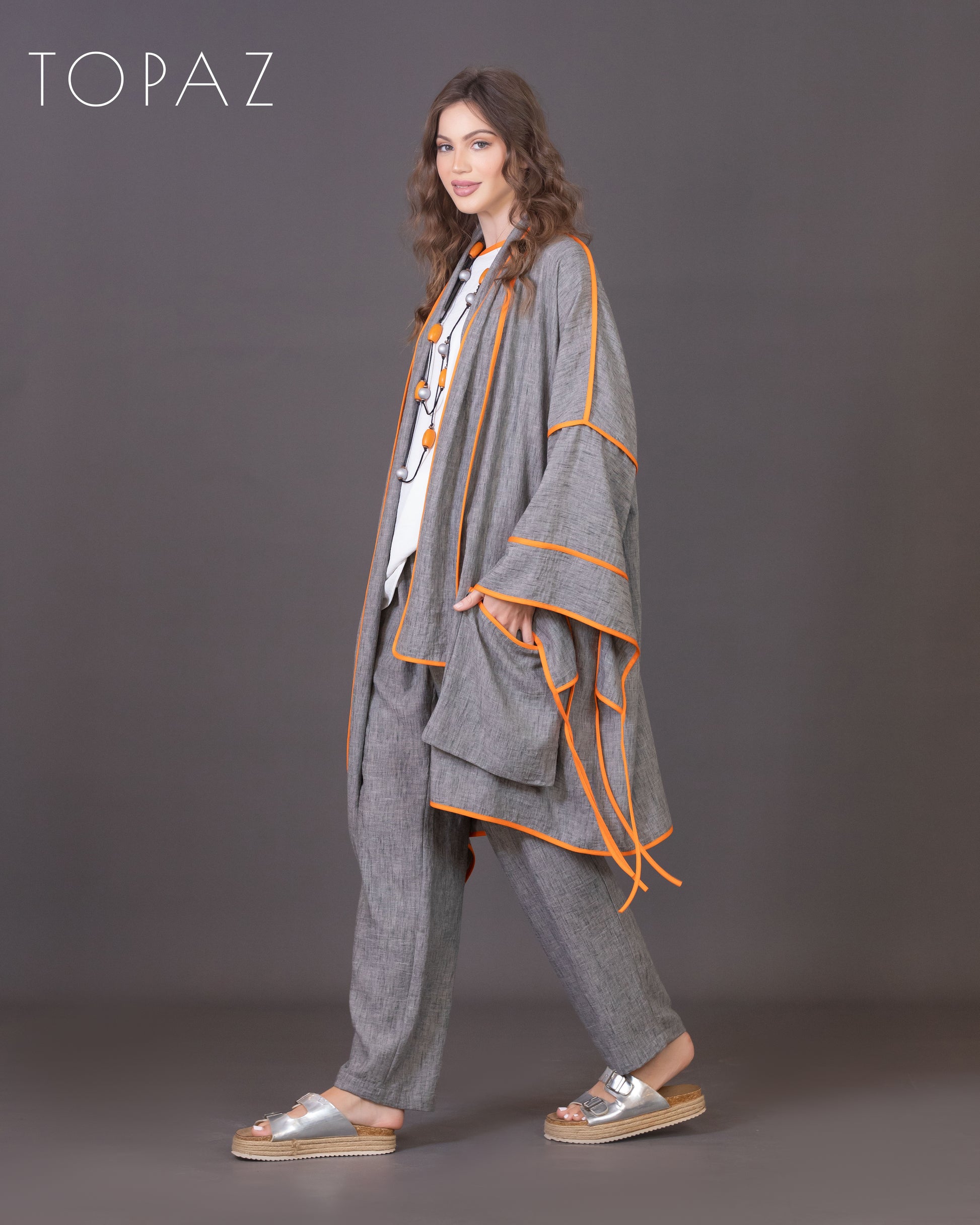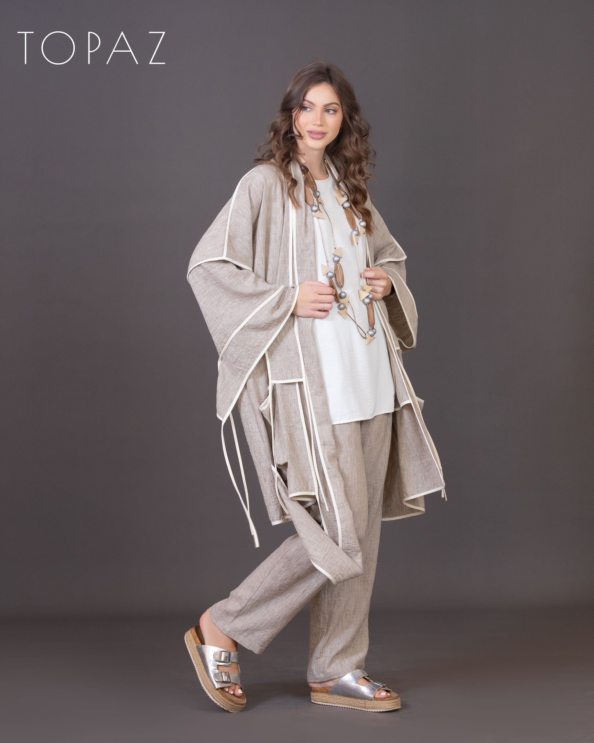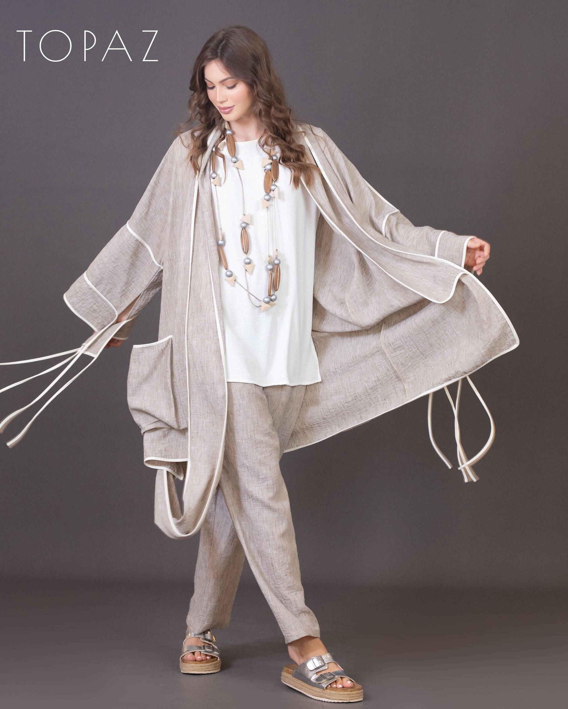 Two-piece set featuring an imported linen fabric and piping detailing.