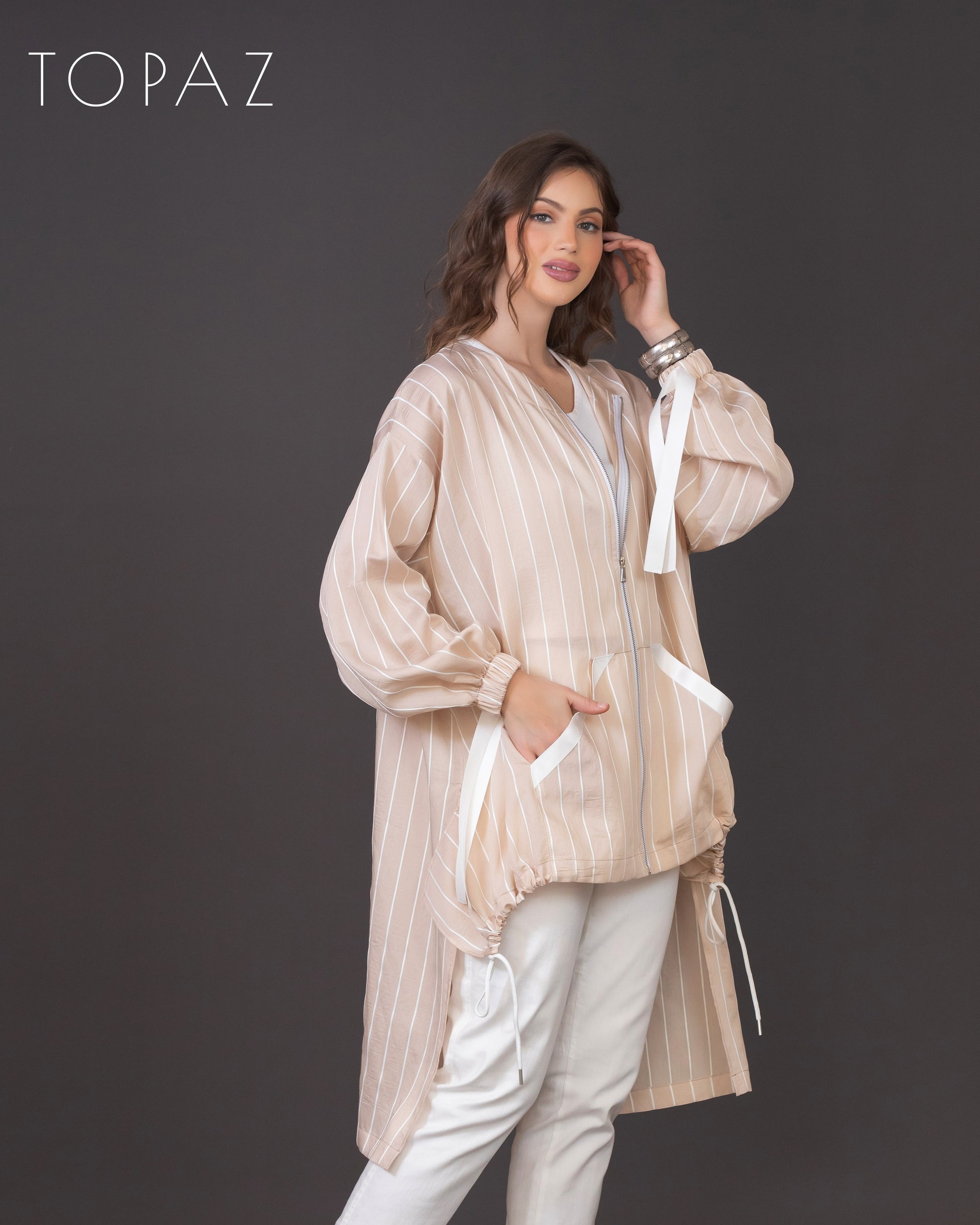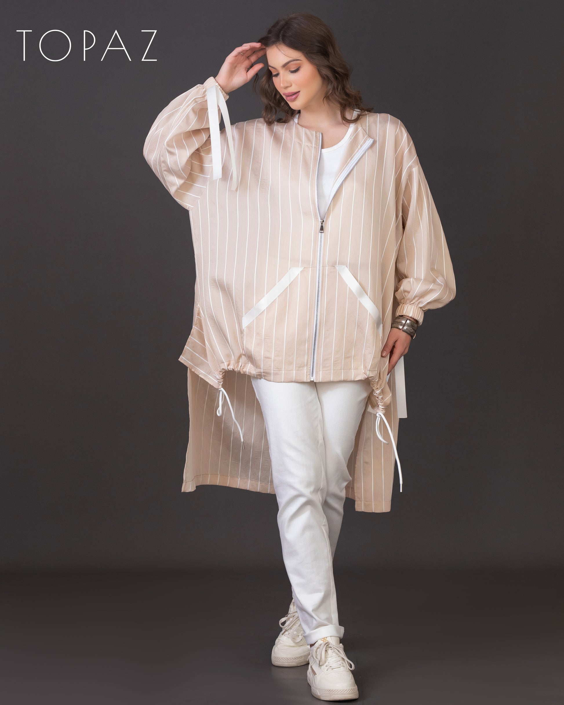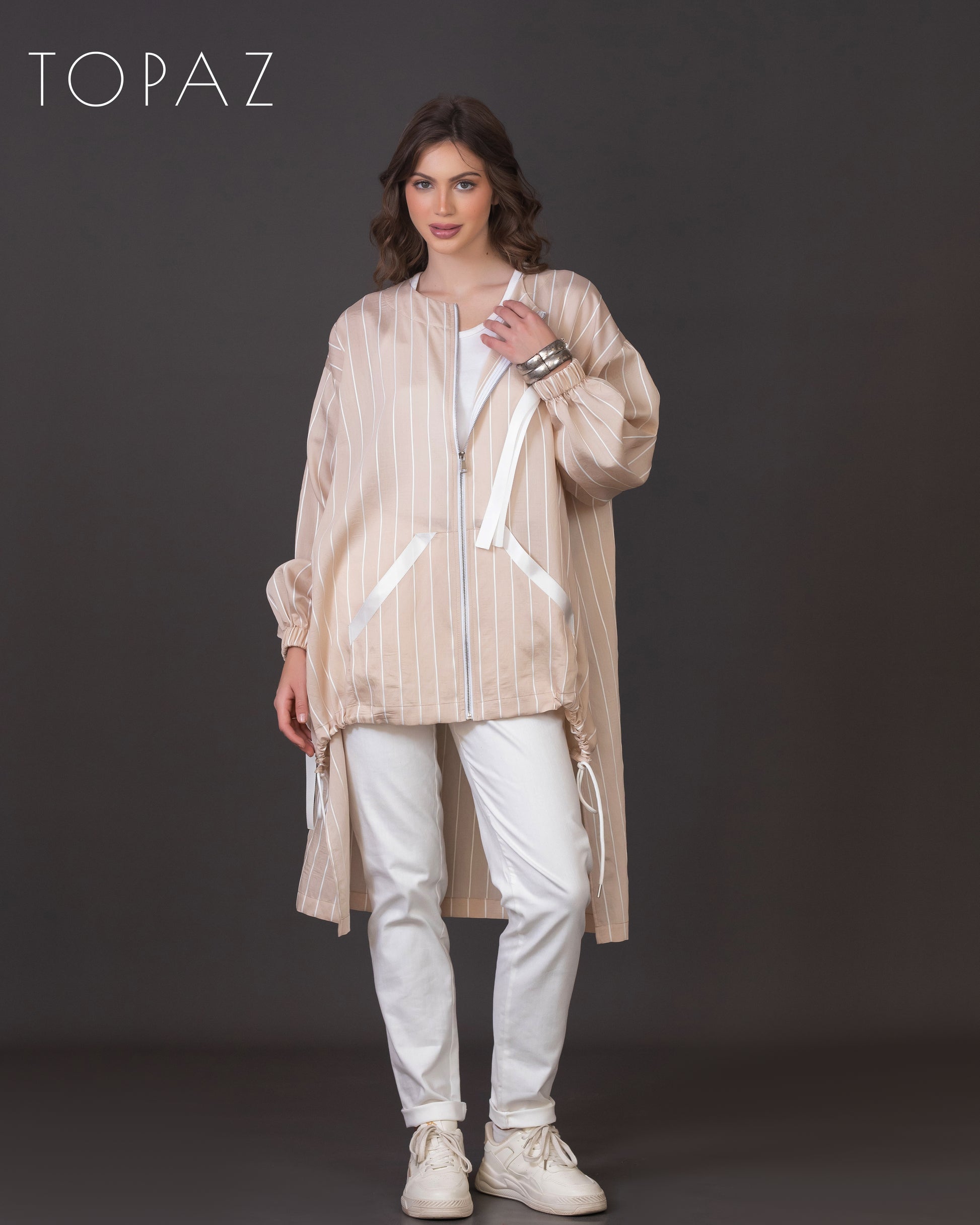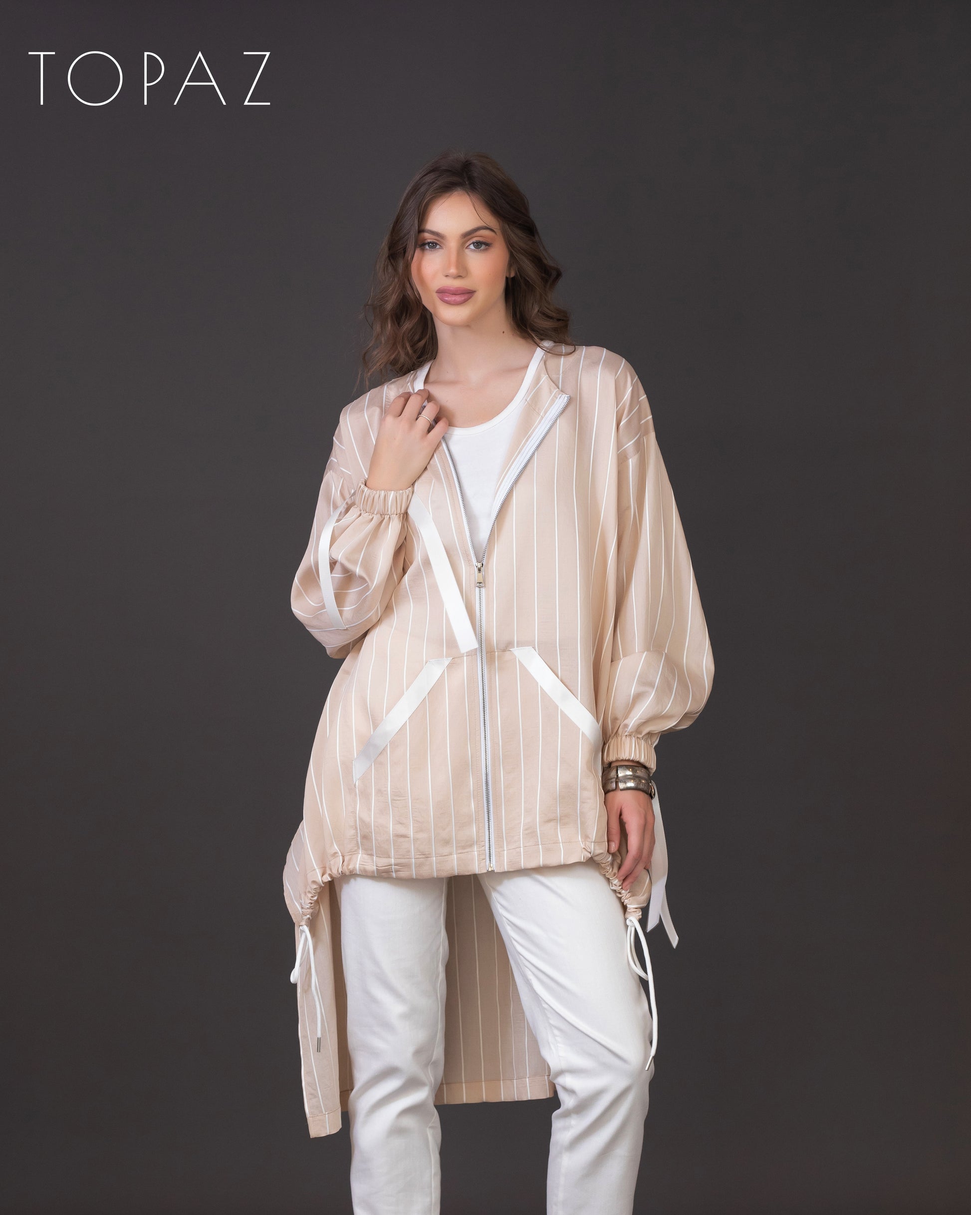 Jacket featuring an imported Ryon Tinsel fabric and stripe detailing.