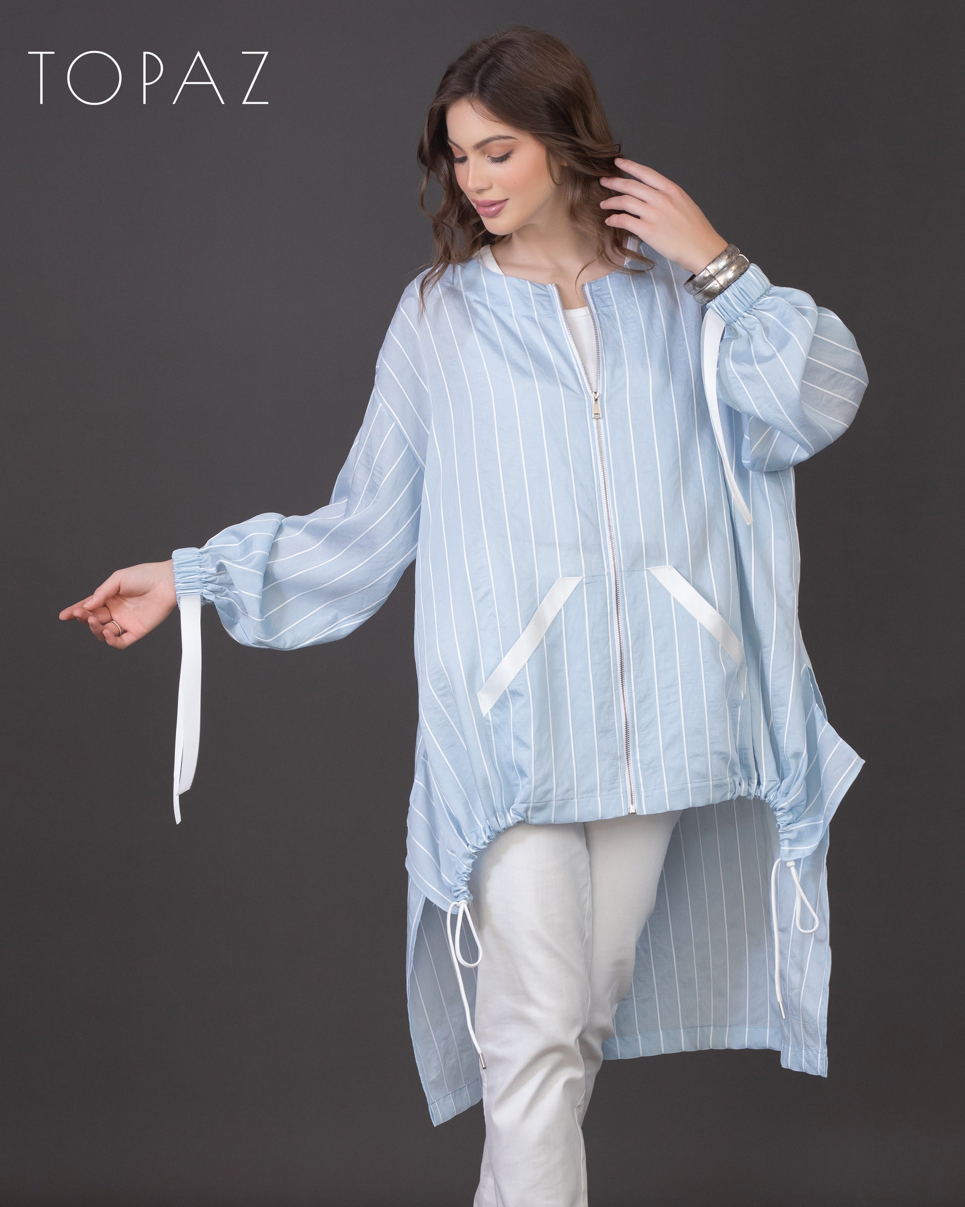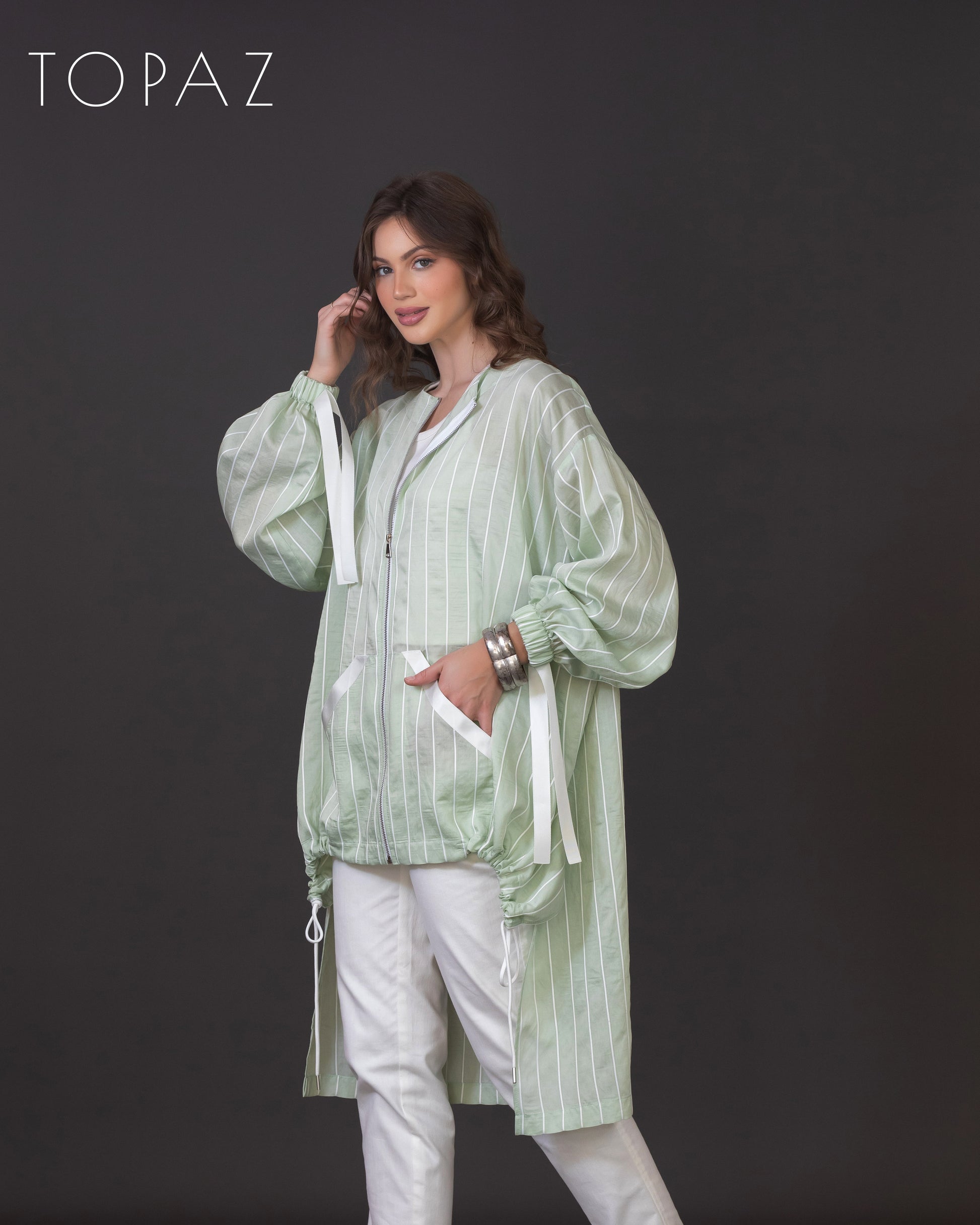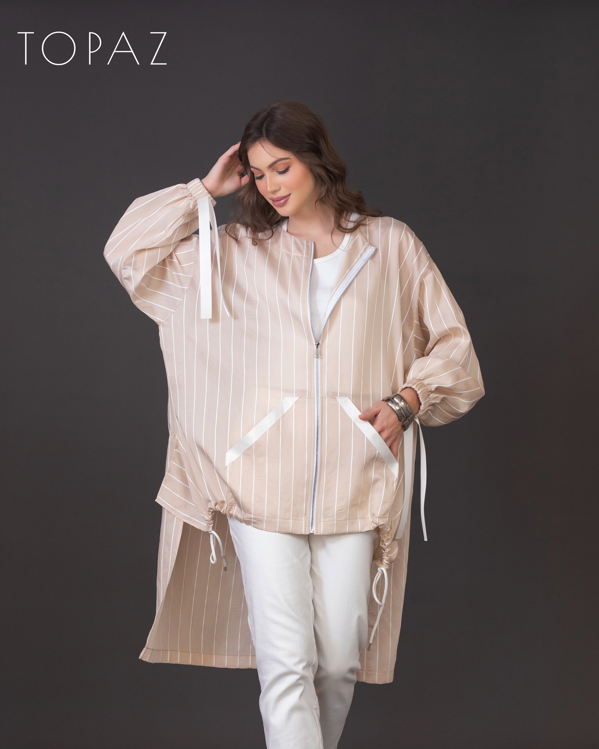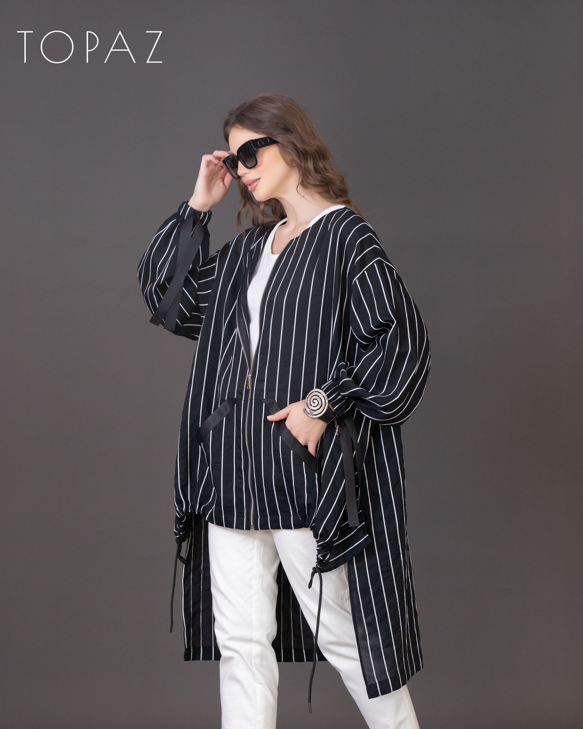 Jacket featuring an imported Ryon Tinsel fabric and stripe detailing.