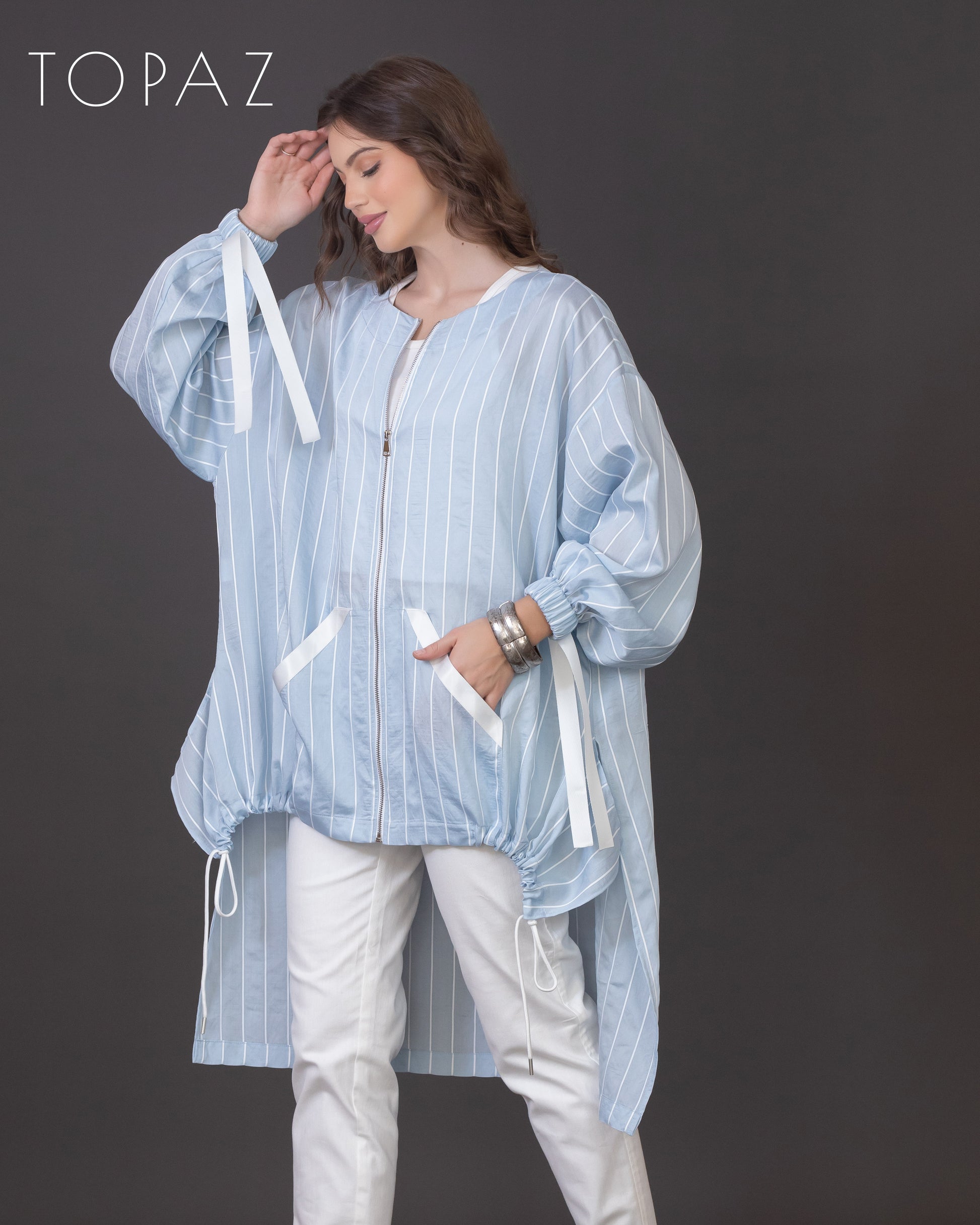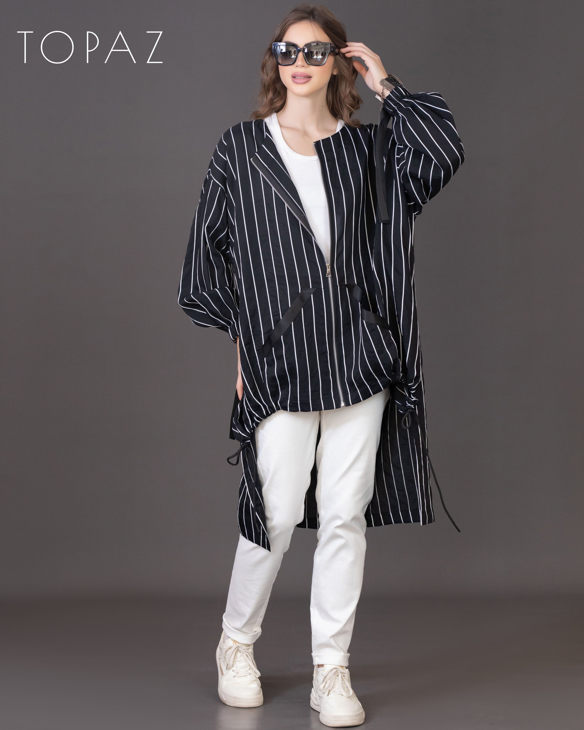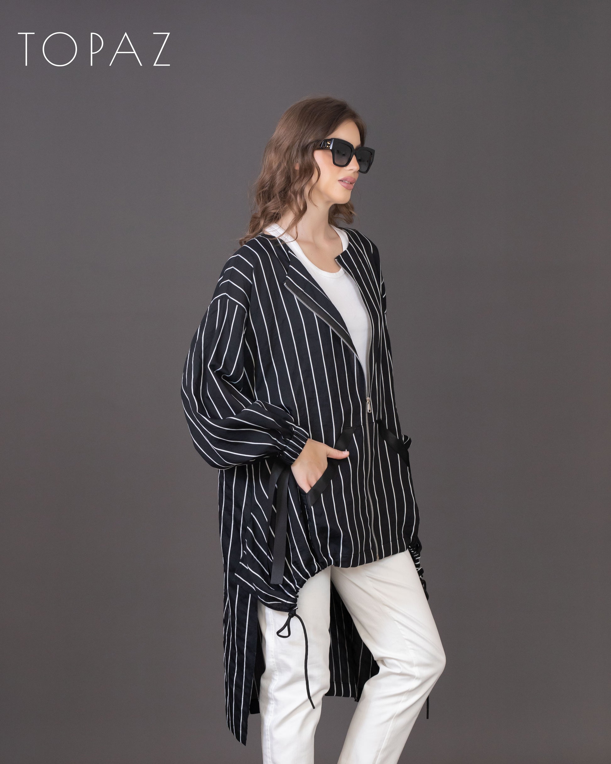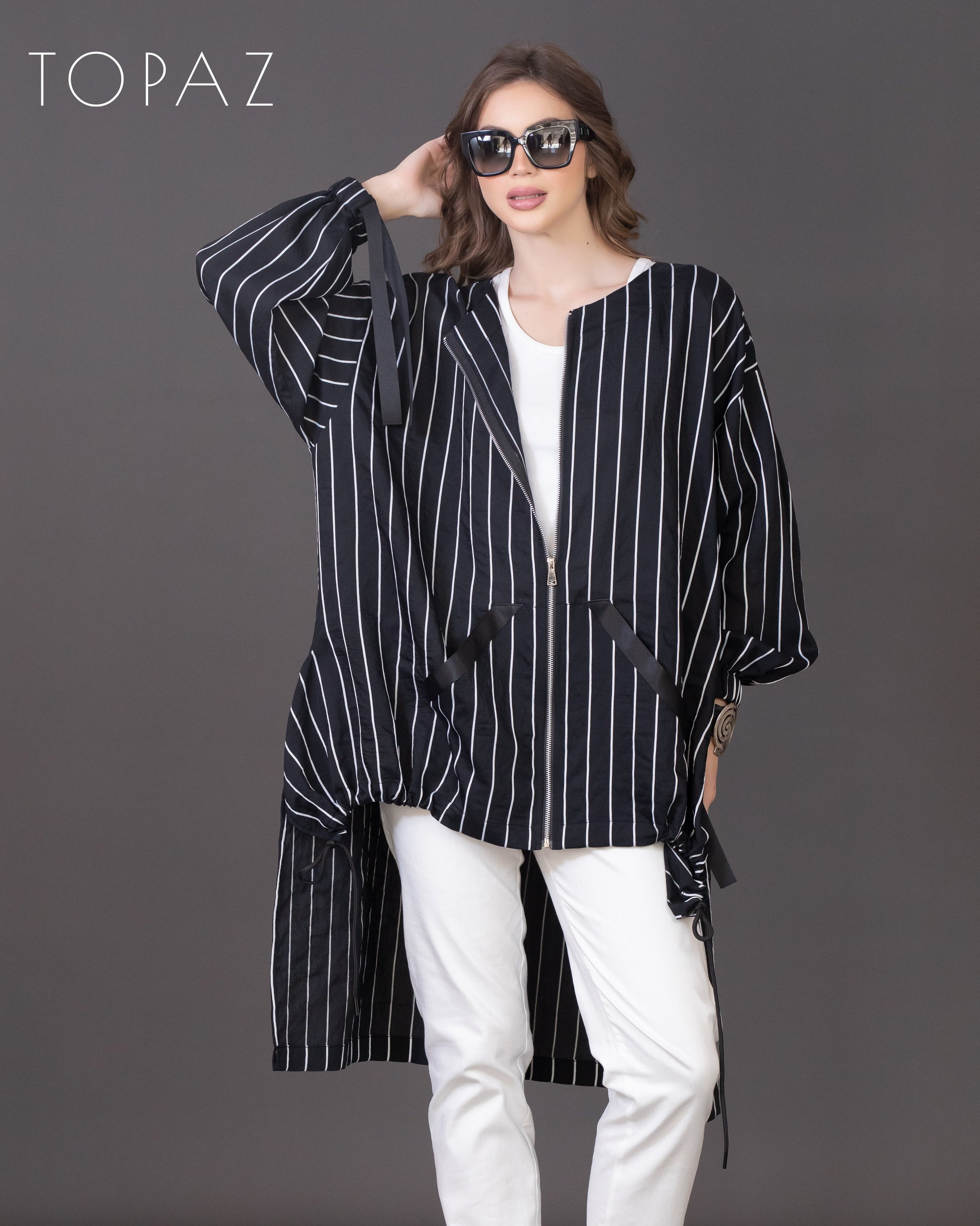 Jacket featuring an imported Ryon Tinsel fabric and stripe detailing.