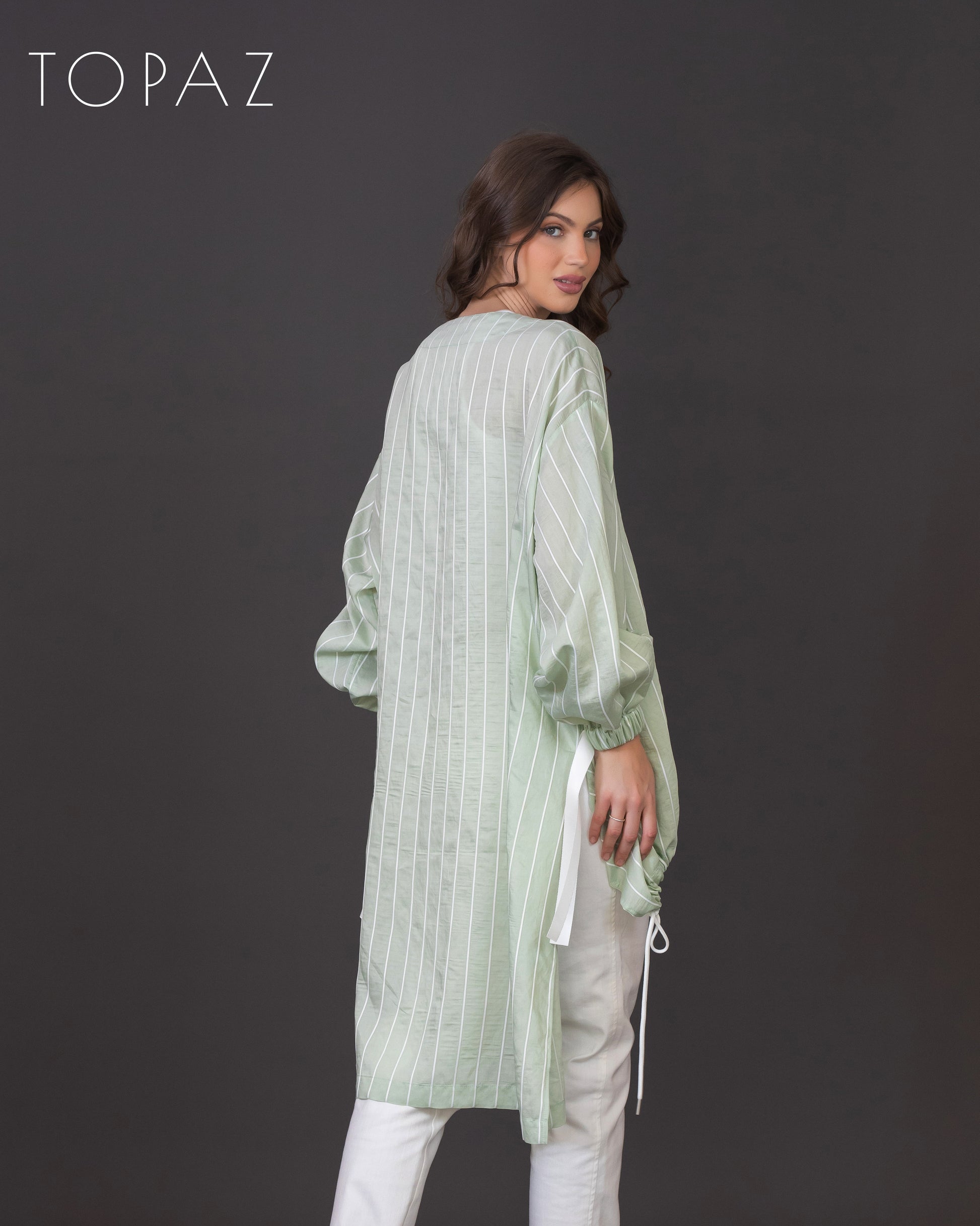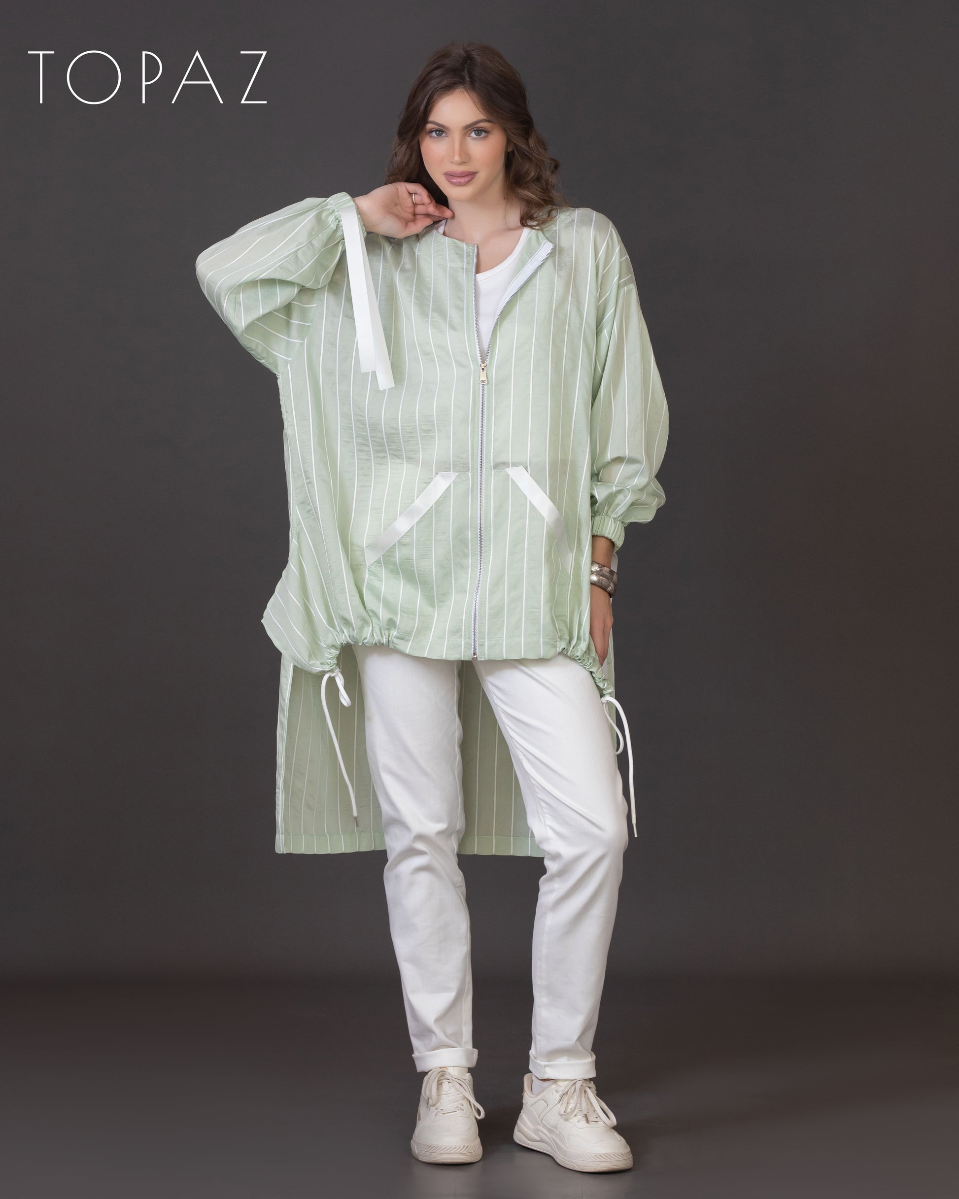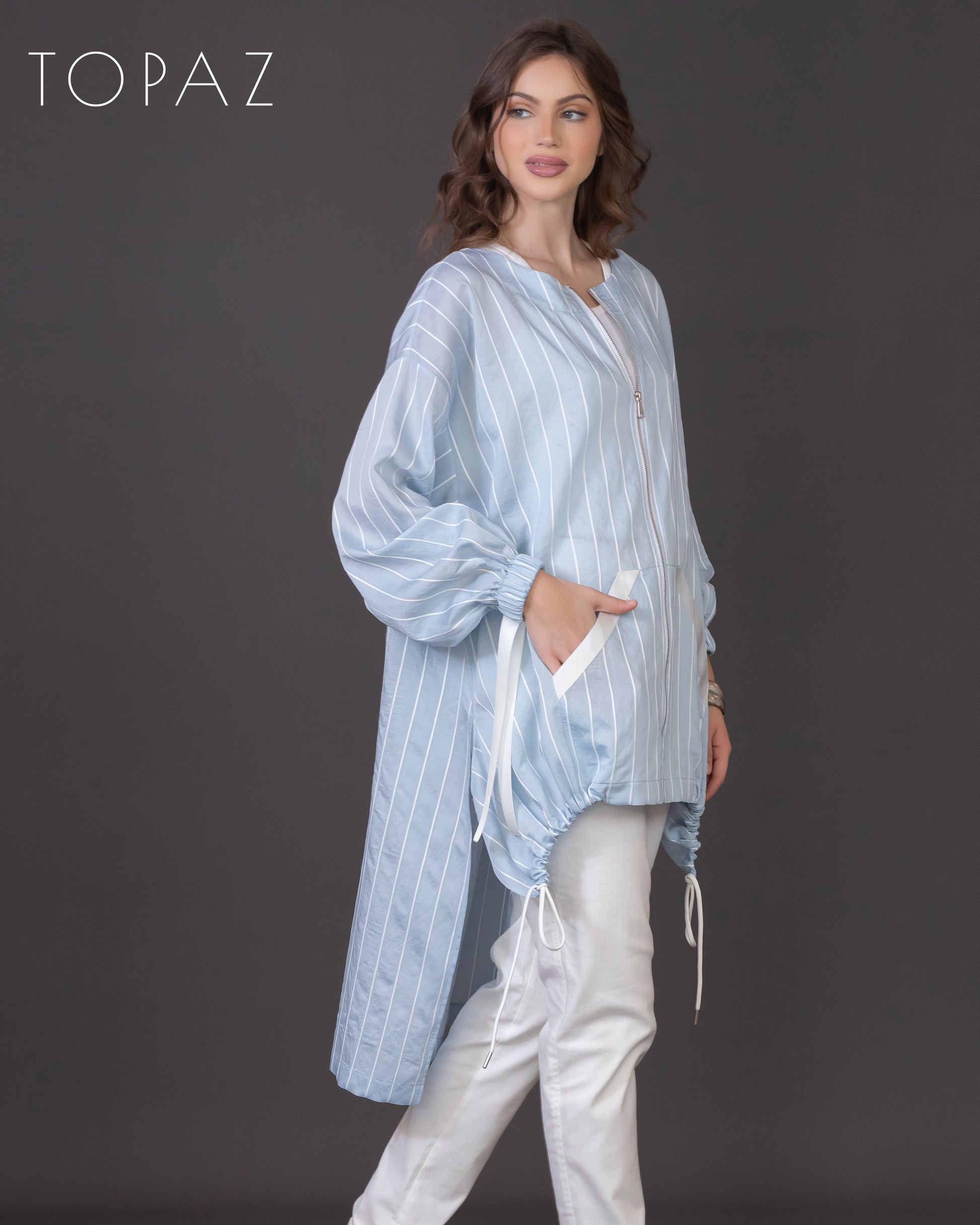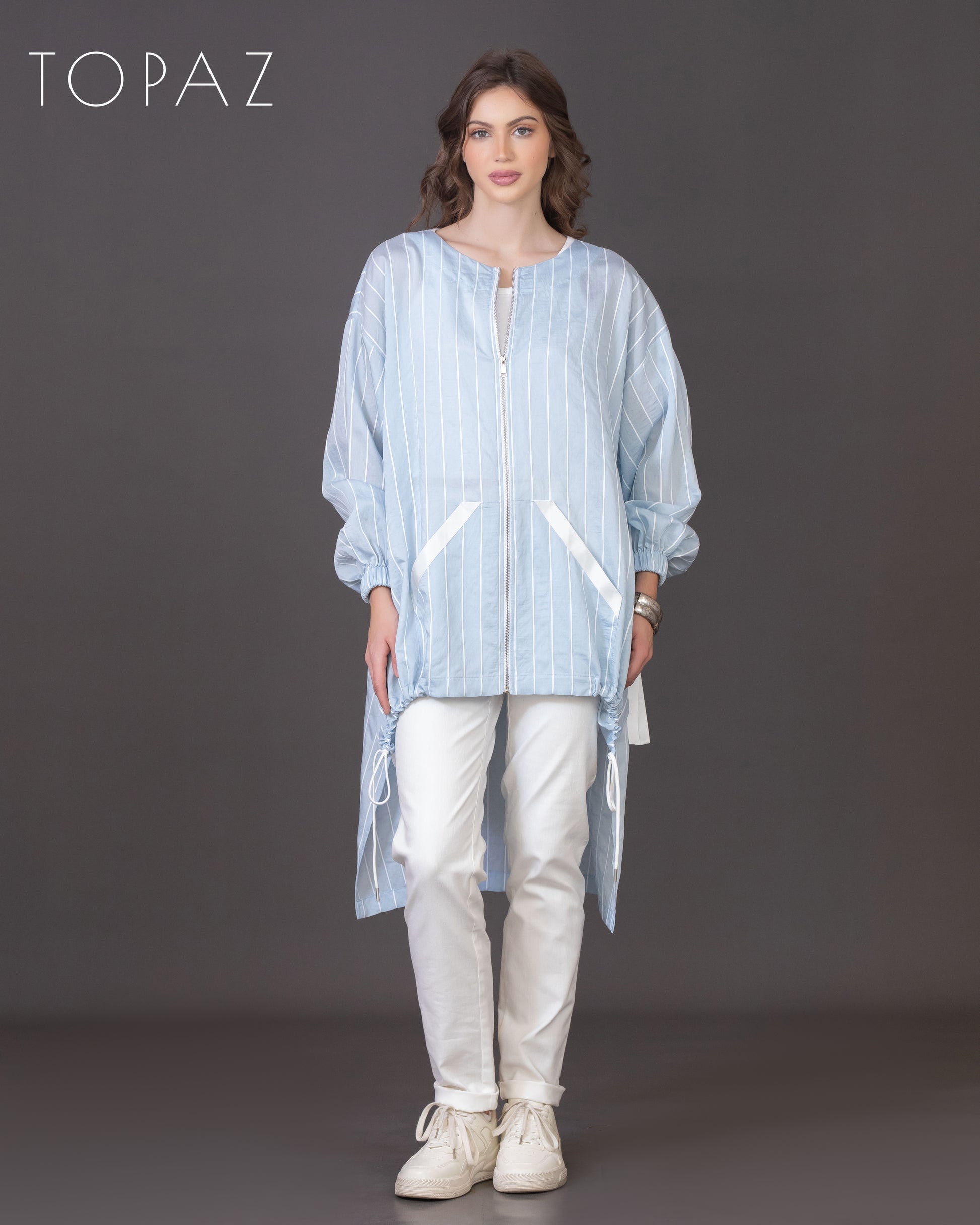 Jacket featuring an imported Ryon Tinsel fabric and stripe detailing.