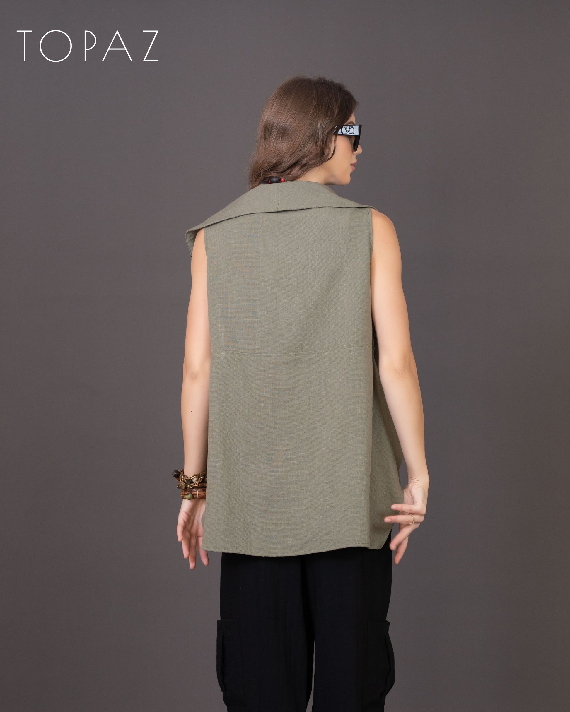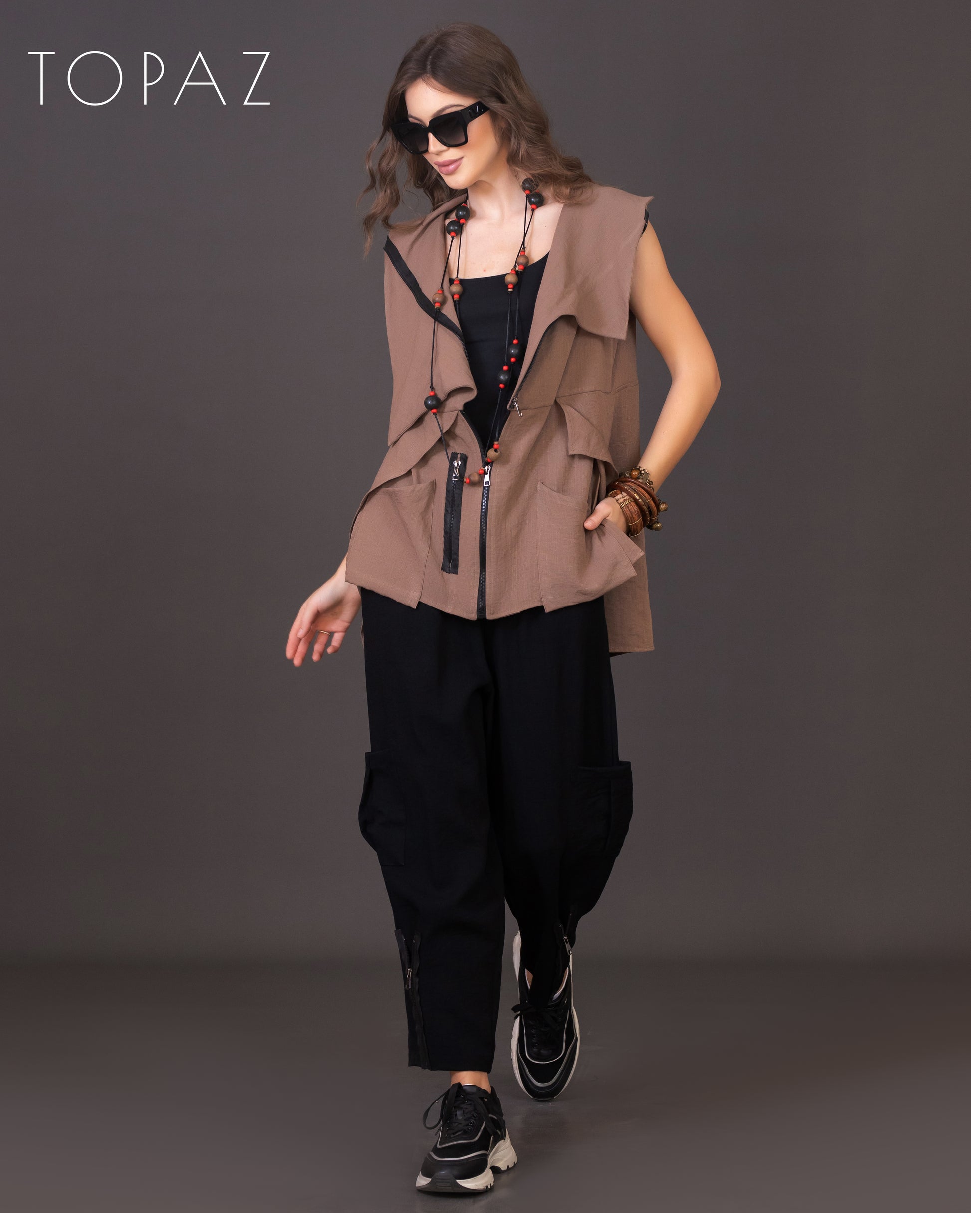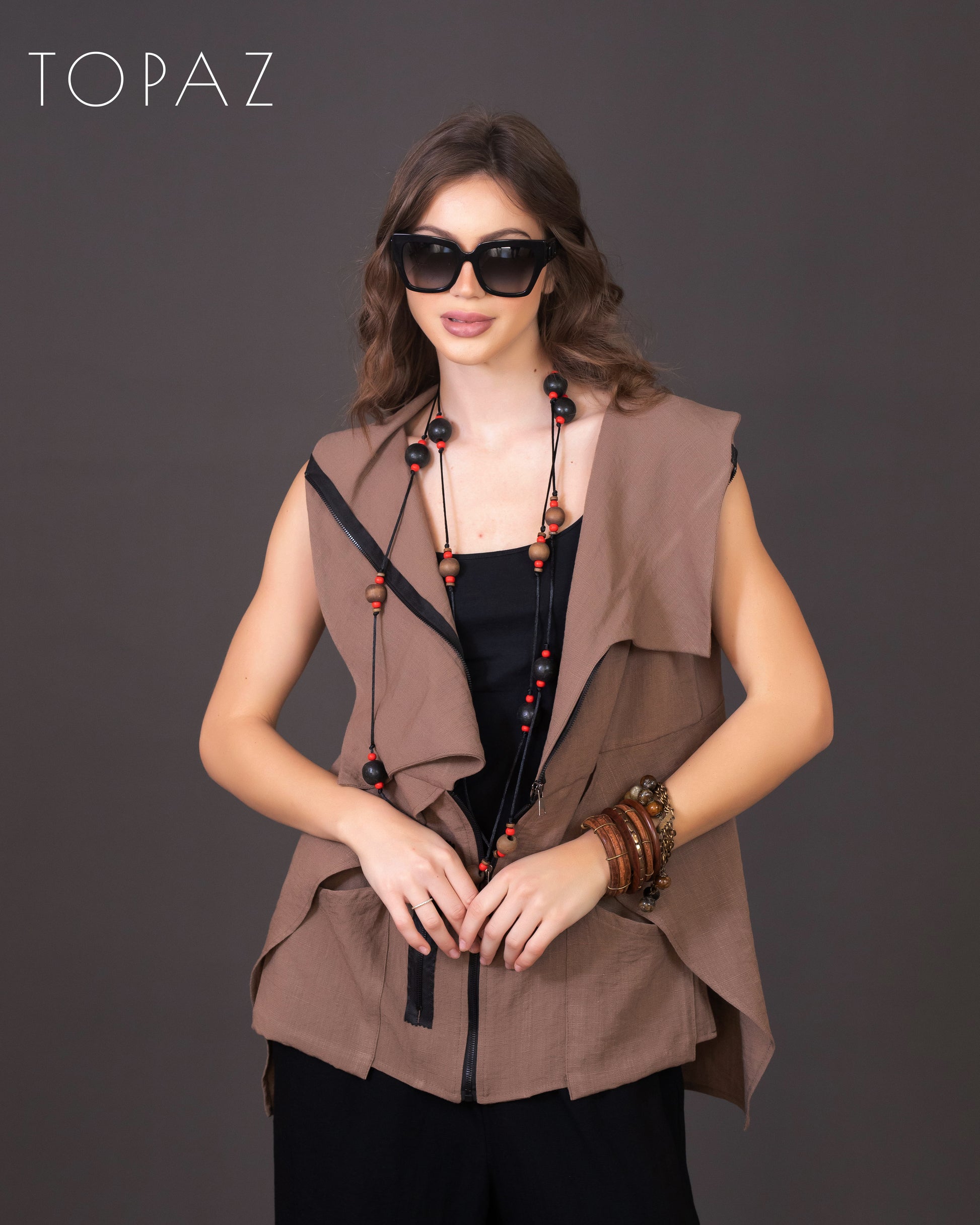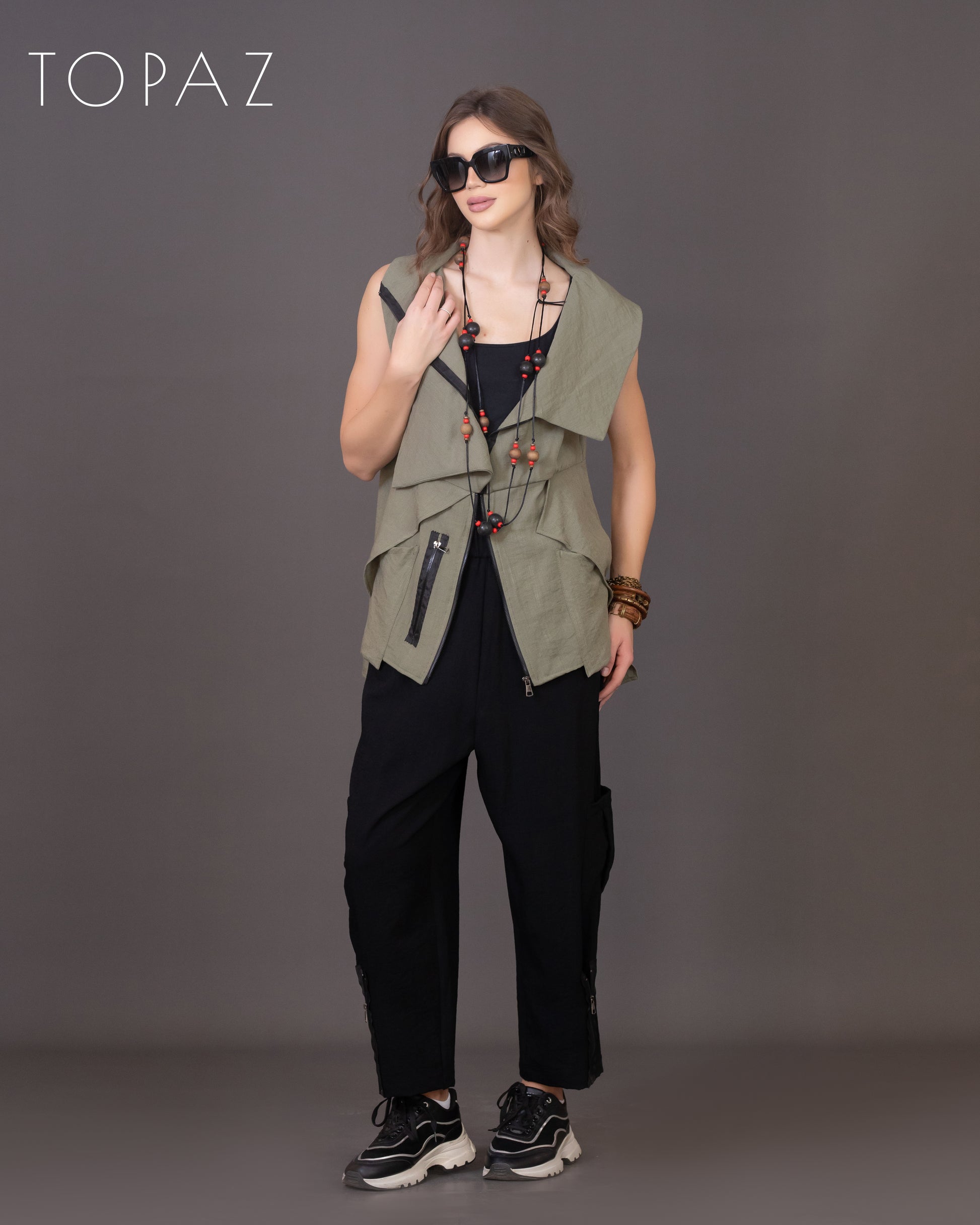 Vest featuring an imported soft linen fabric and black zipper detailing.