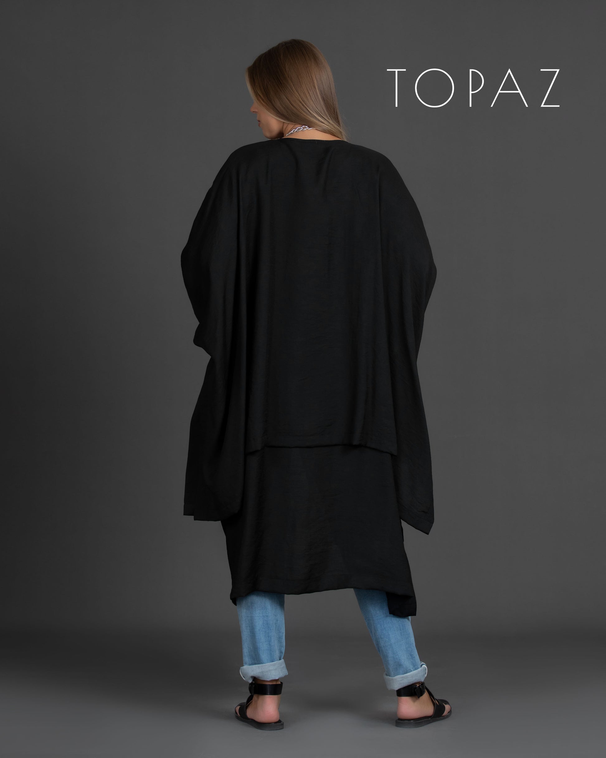 A two-layered linen cardigan, featuring silver detailing.