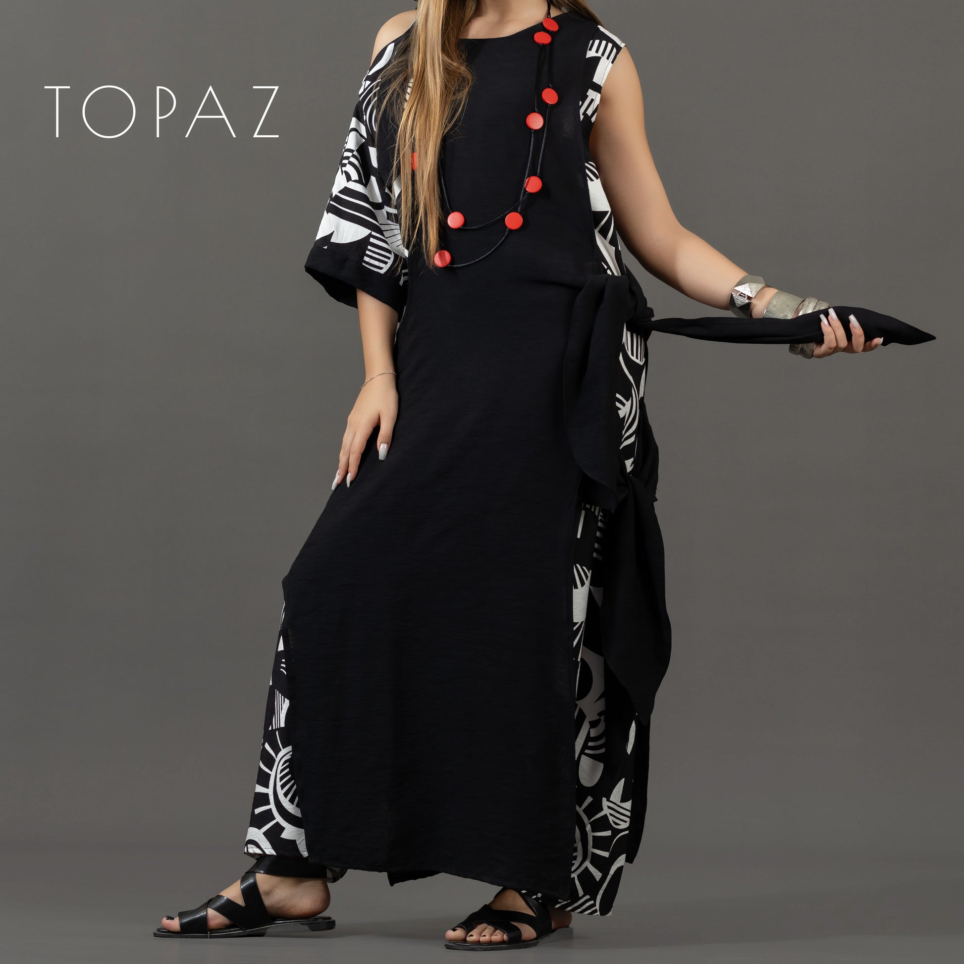 Jumpsuit featuring a floral under layer and an imported soft linen top layer with ties on the side.