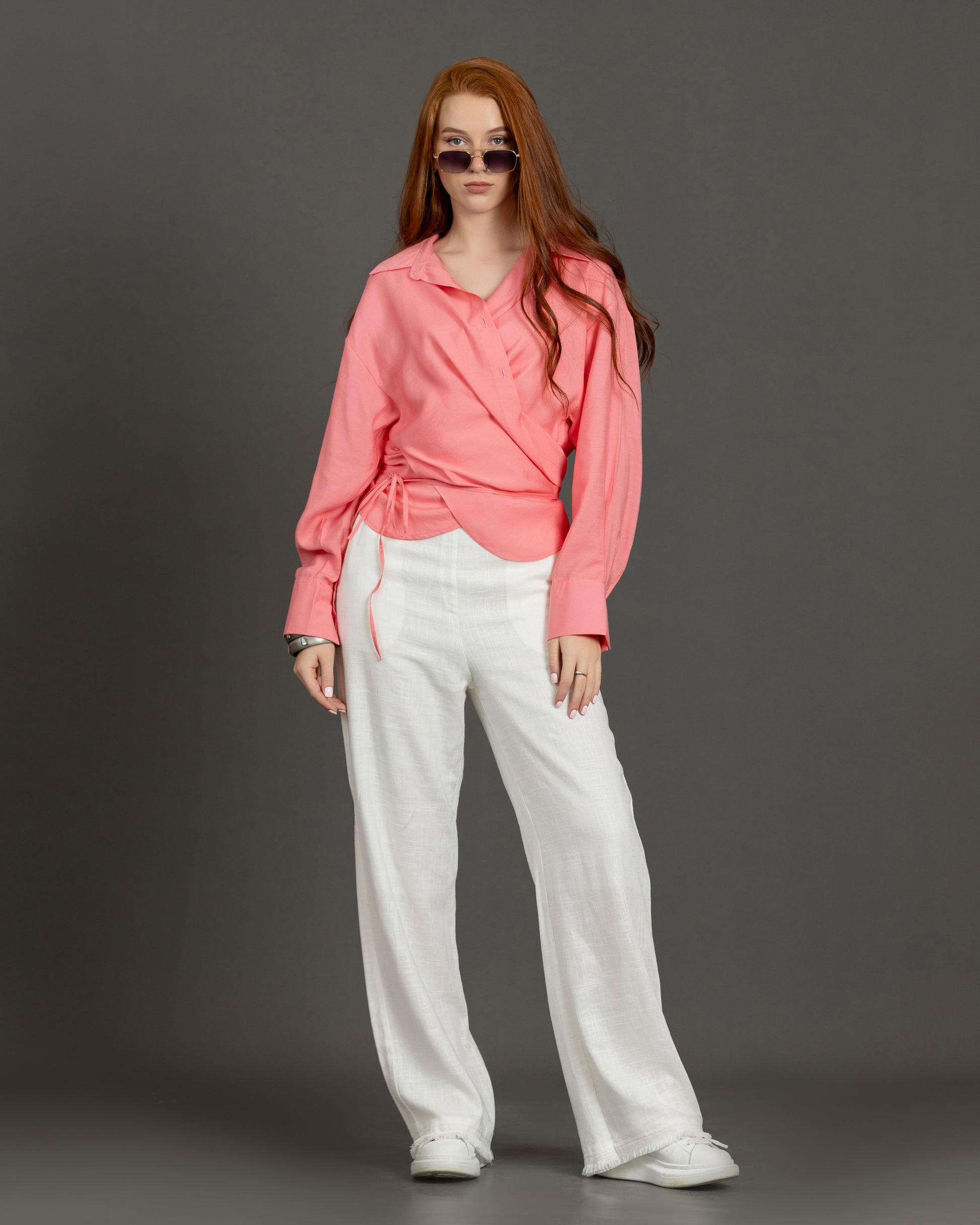 Wrap-around shirt featuring an imported Tencel Rayon fabric.