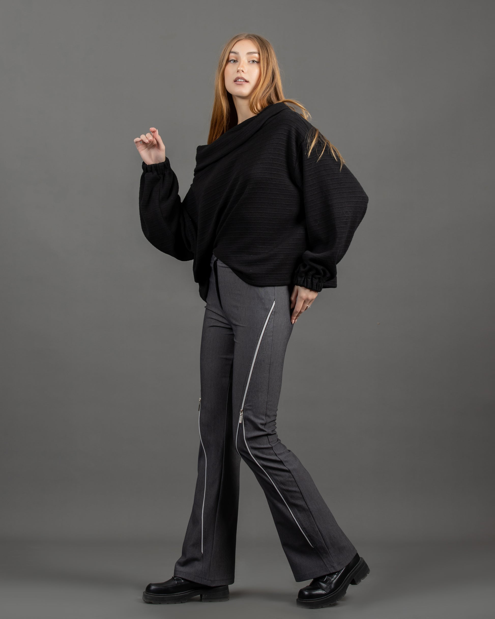 Pants featuring an imported lycra winter fabric, and zippers that adjust the bottom-half width.