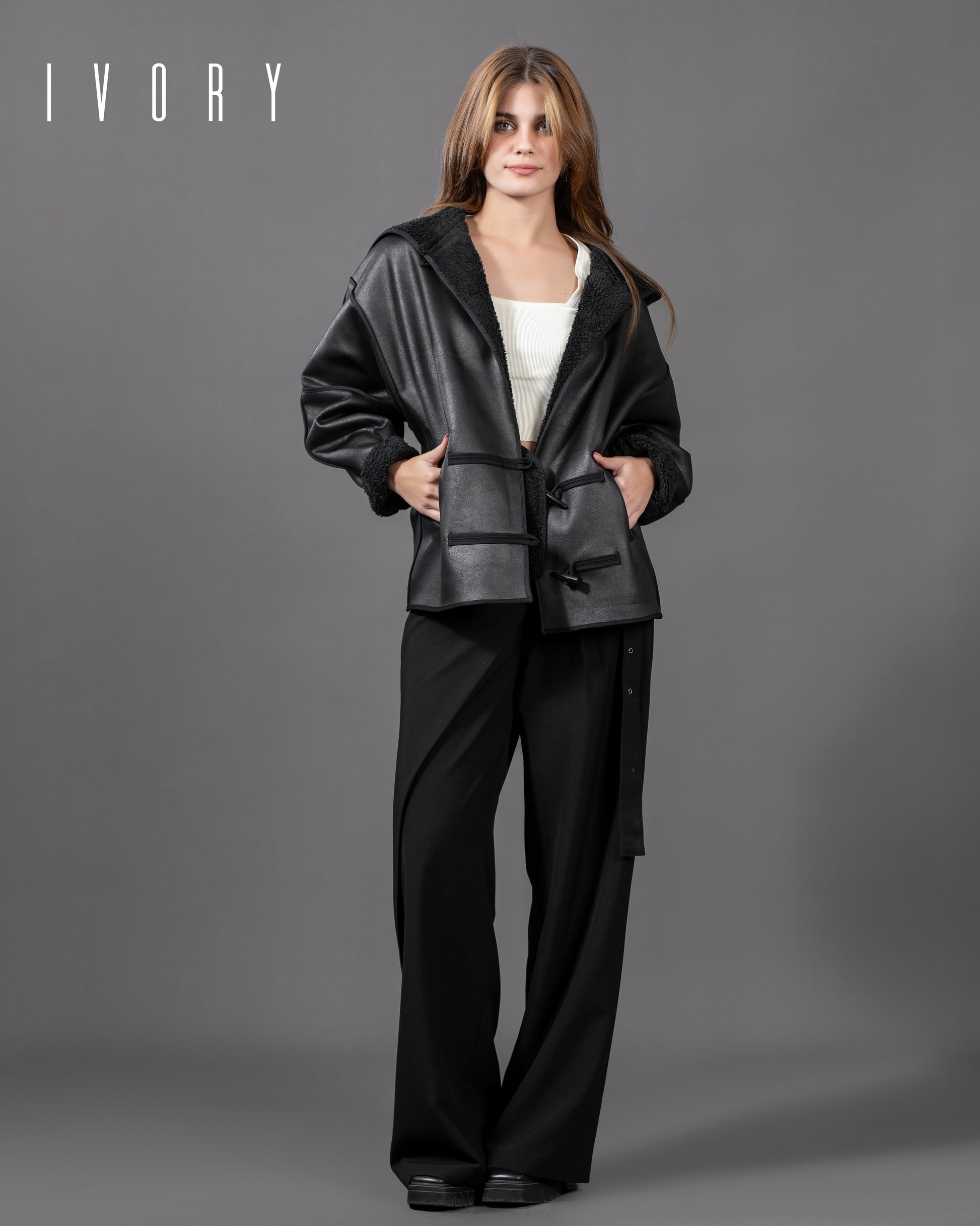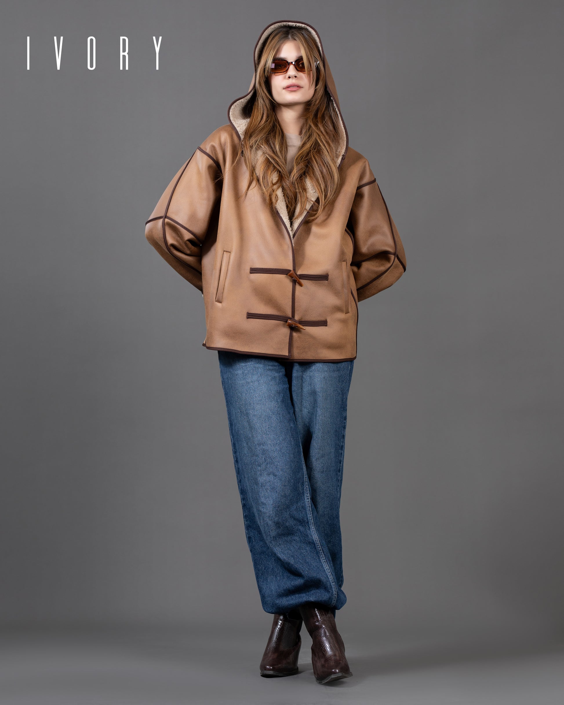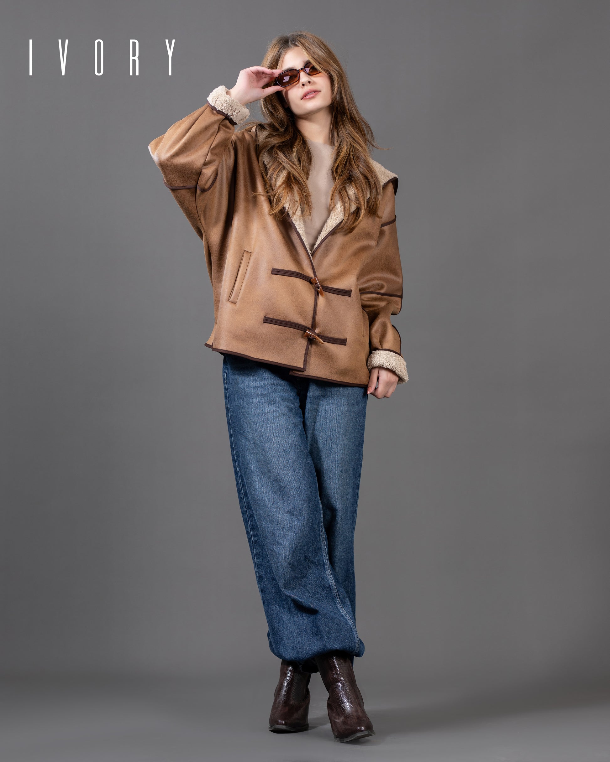 Jacket featuring an imported suede fabric and boucle lining.